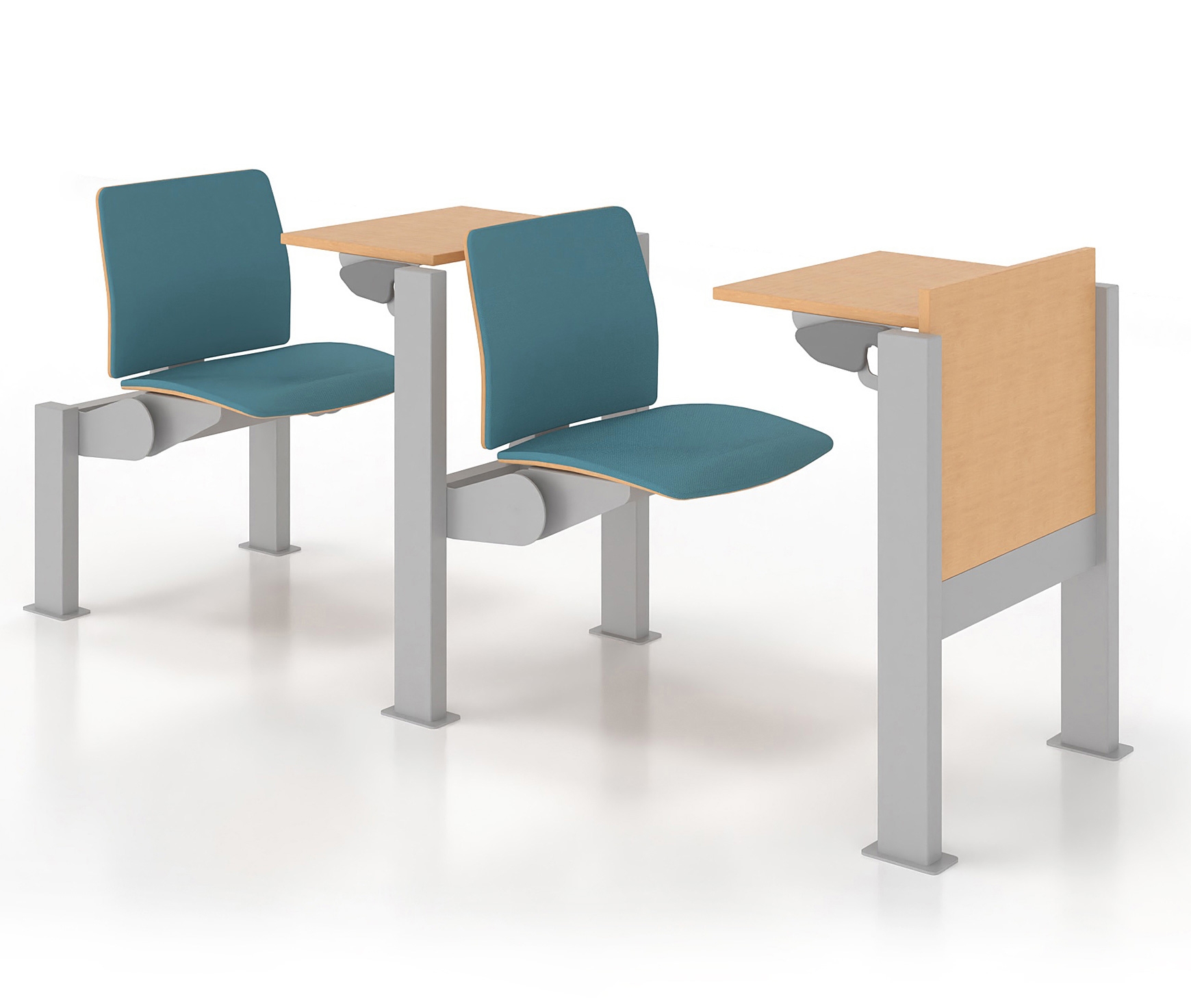 SETTINGS - The independent adjustment of seat height and work surface, along with the "Anti-panic" recline system for smooth return to the initial position, enhances ergonomics and safety in education at a high level.