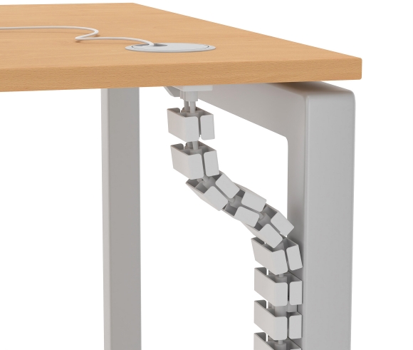 For maximum safety and order in the office, the cable spine is essential. It is available in two sizes 800 mm for the fixed desks and 130 mm for the electric ones. They are compatible with all desks and are applied under the surface of the desk using screws.