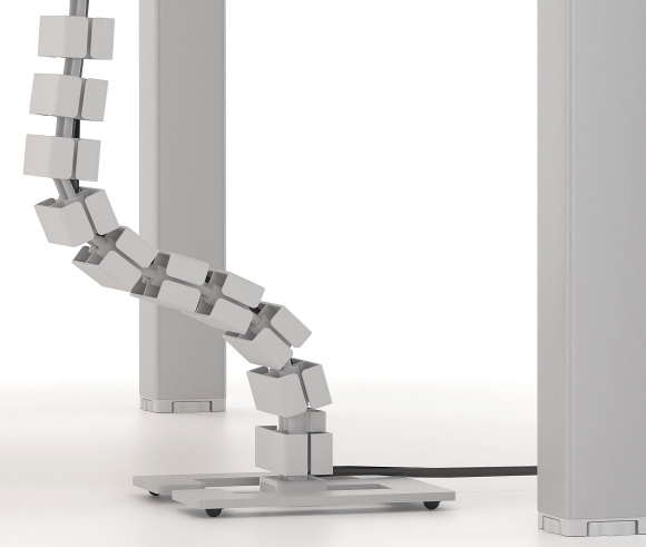 For maximum safety and order in the office, the cable spine is essential. It is available in two sizes 800 mm for the fixed desks and 130 mm for the electric ones. They are compatible with all desks and are applied under the surface of the desk using screws. It is made of thermoplastic polyamide and has a round base which is made of galvanized steel sheet 15 mm thick, covered with plastic.
