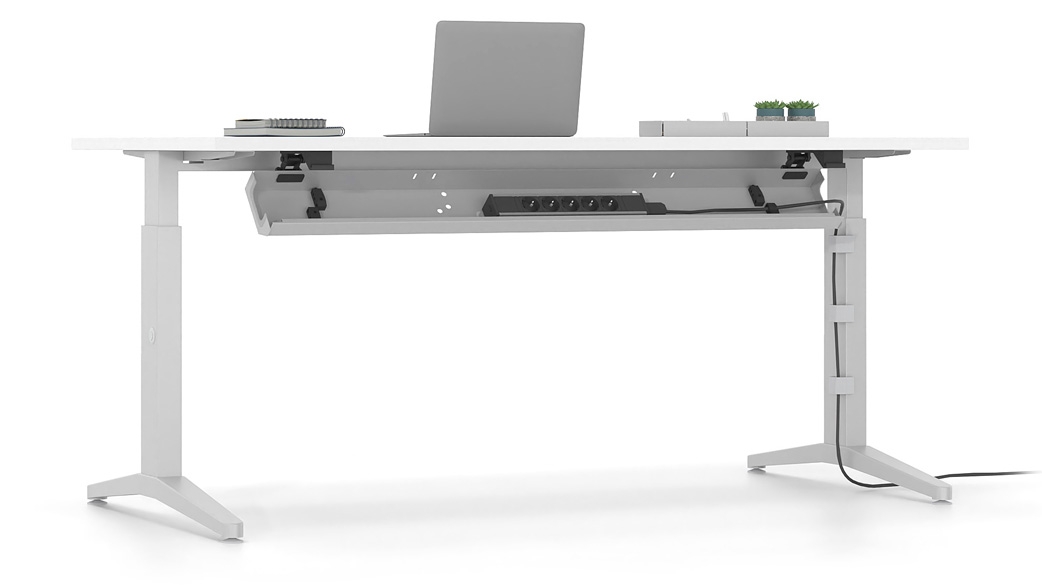 The modular cable channel is placed under the desk surface and is essential for maximum safety and ergonomics. It can be placed in all DROMEAS company offices and is available in a wide variety of colors