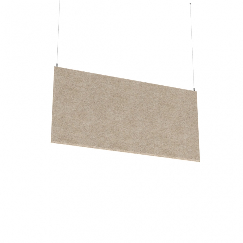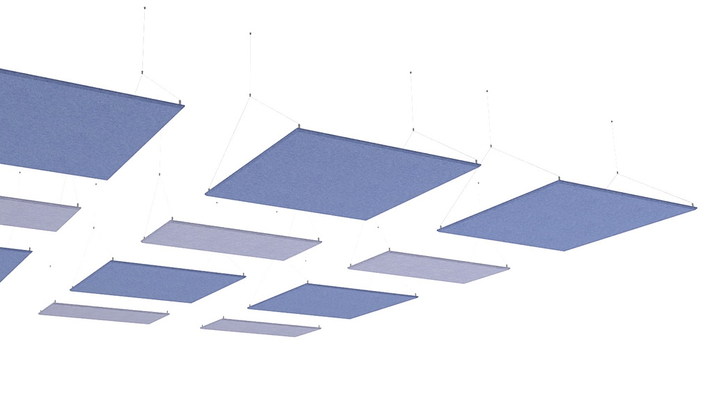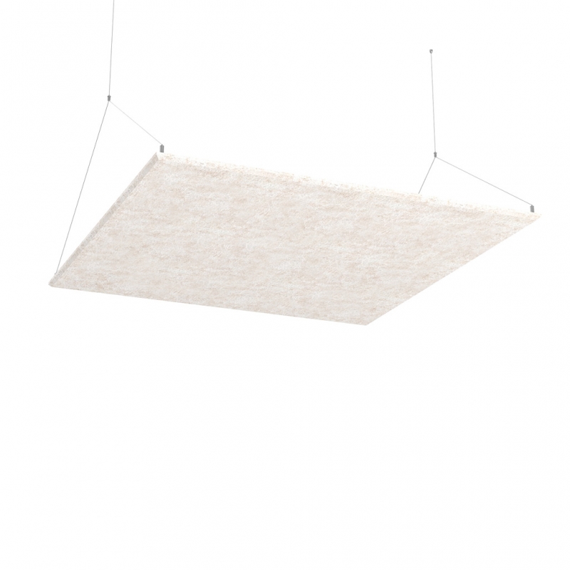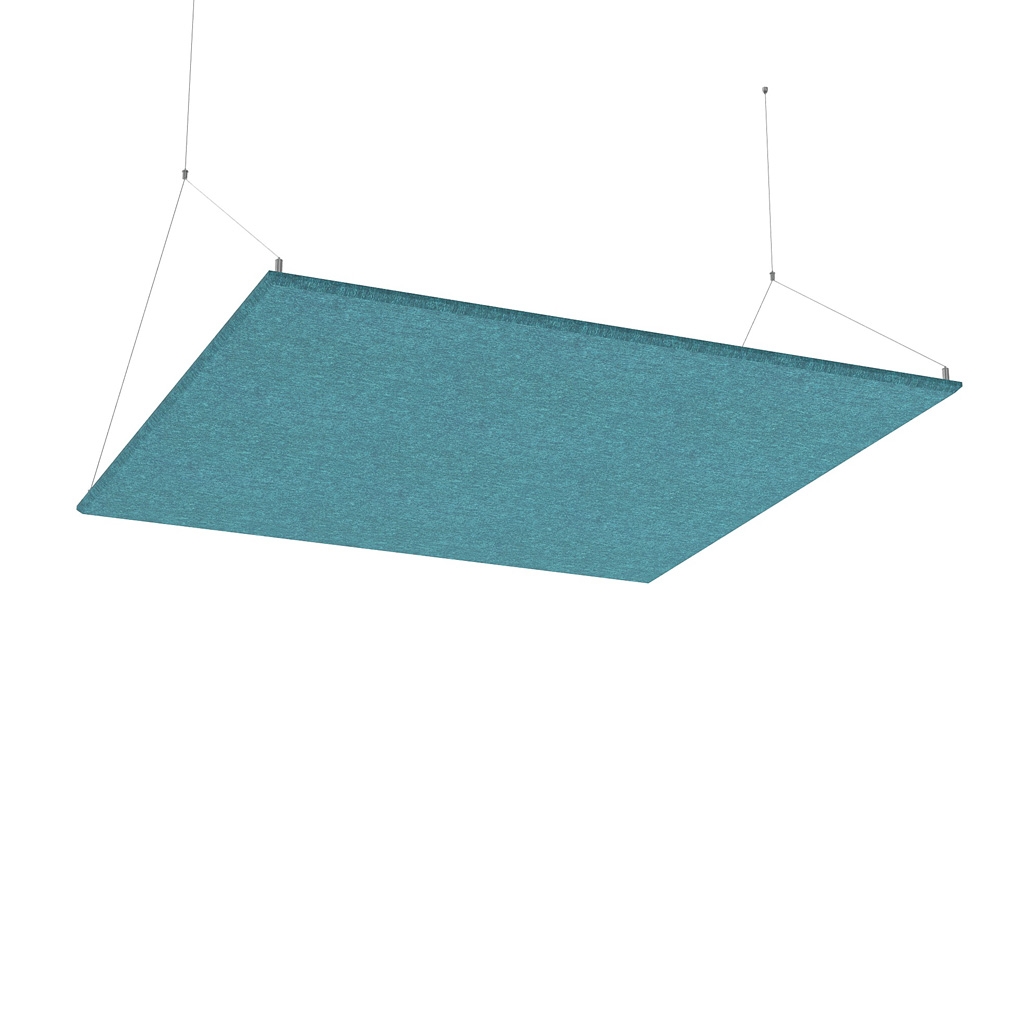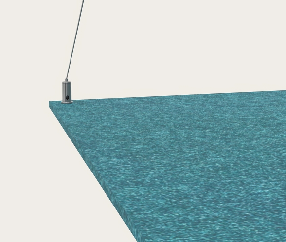 Ceiling-suspended acoustic panels are available in rectangular and square shapes. Also made from 100% PET felt with a thickness of 18mm, they provide high sound absorption and aesthetic balance in the space. Ceiling suspension is achieved via an adjustable-height hanging system, allowing adaptation to the needs of any environment.