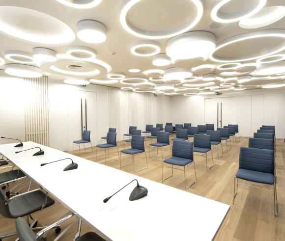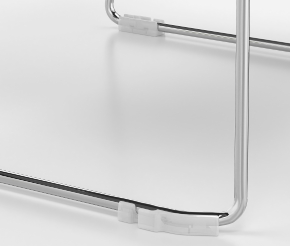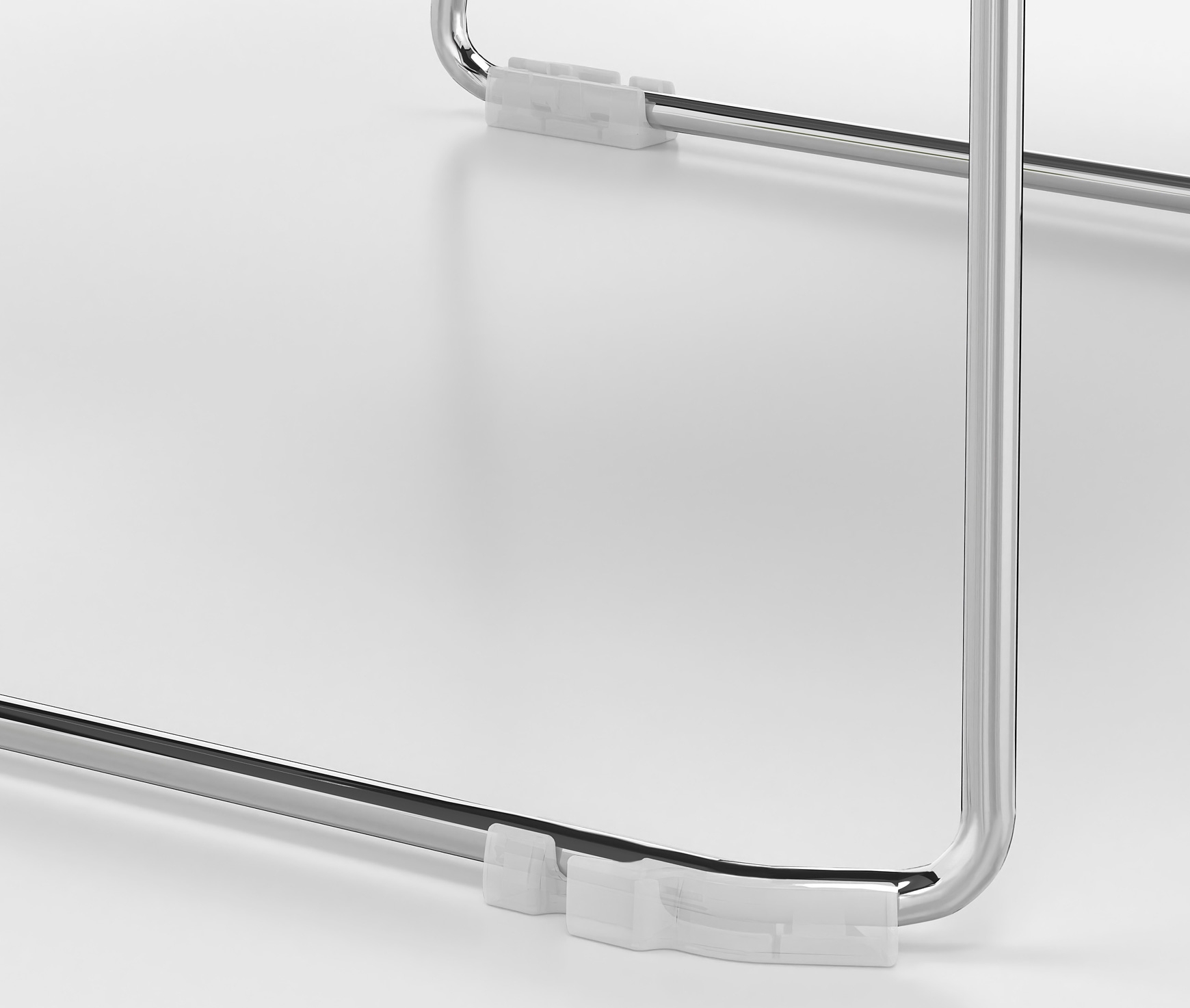 Modern, stackable conference chair with metal, chrome-plated frame and separate seat-back. The ENA series has a molded thermoplastic seat and back, optionally with a polyurethane foam cushion and optional upholstery. At the same time, through special plastic connectors, the possibility of connecting the chairs in a row is offered.