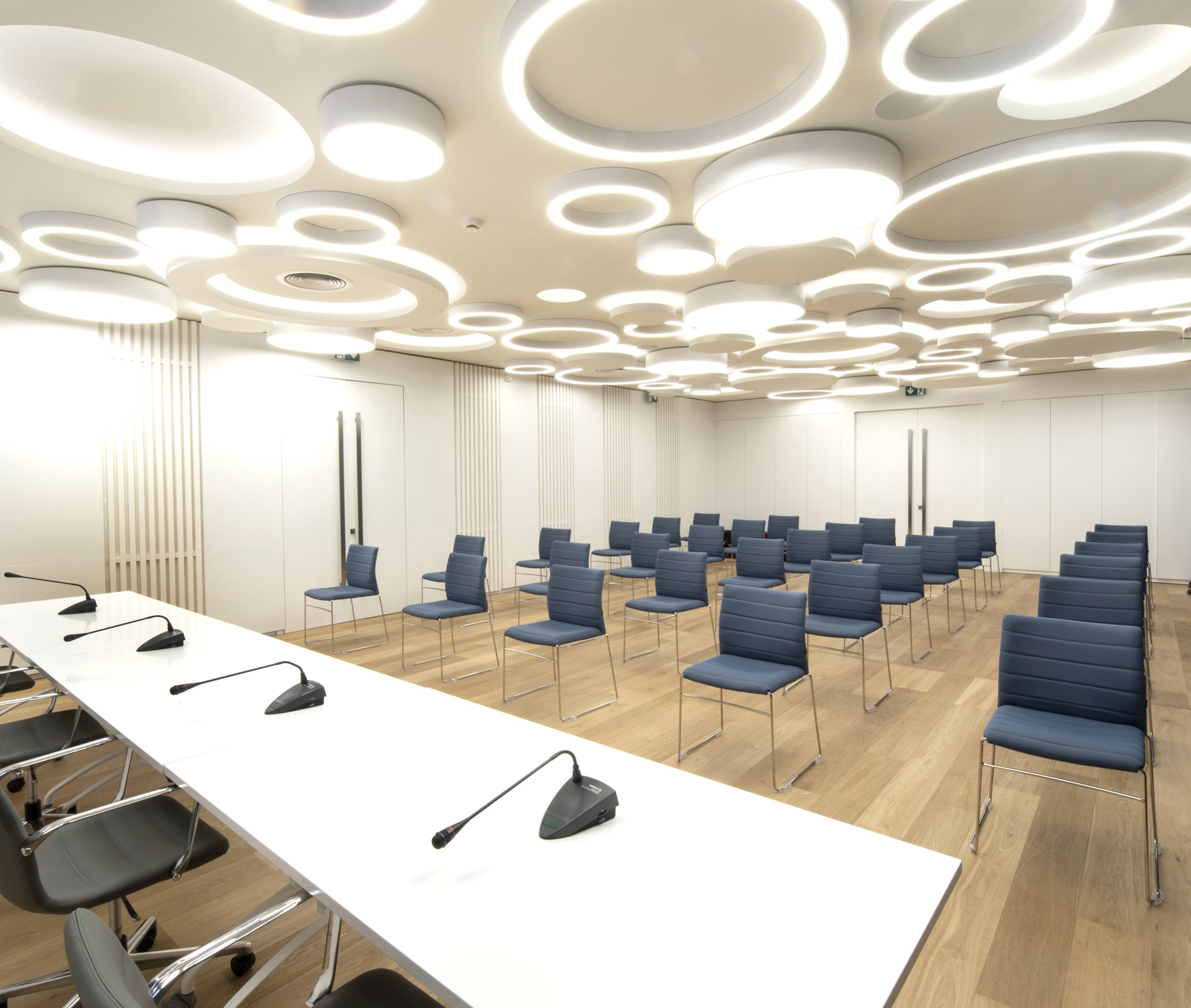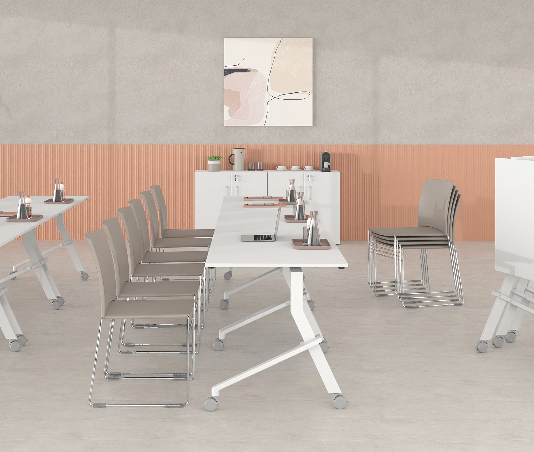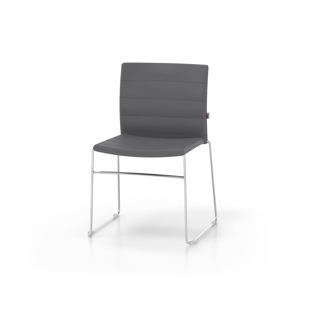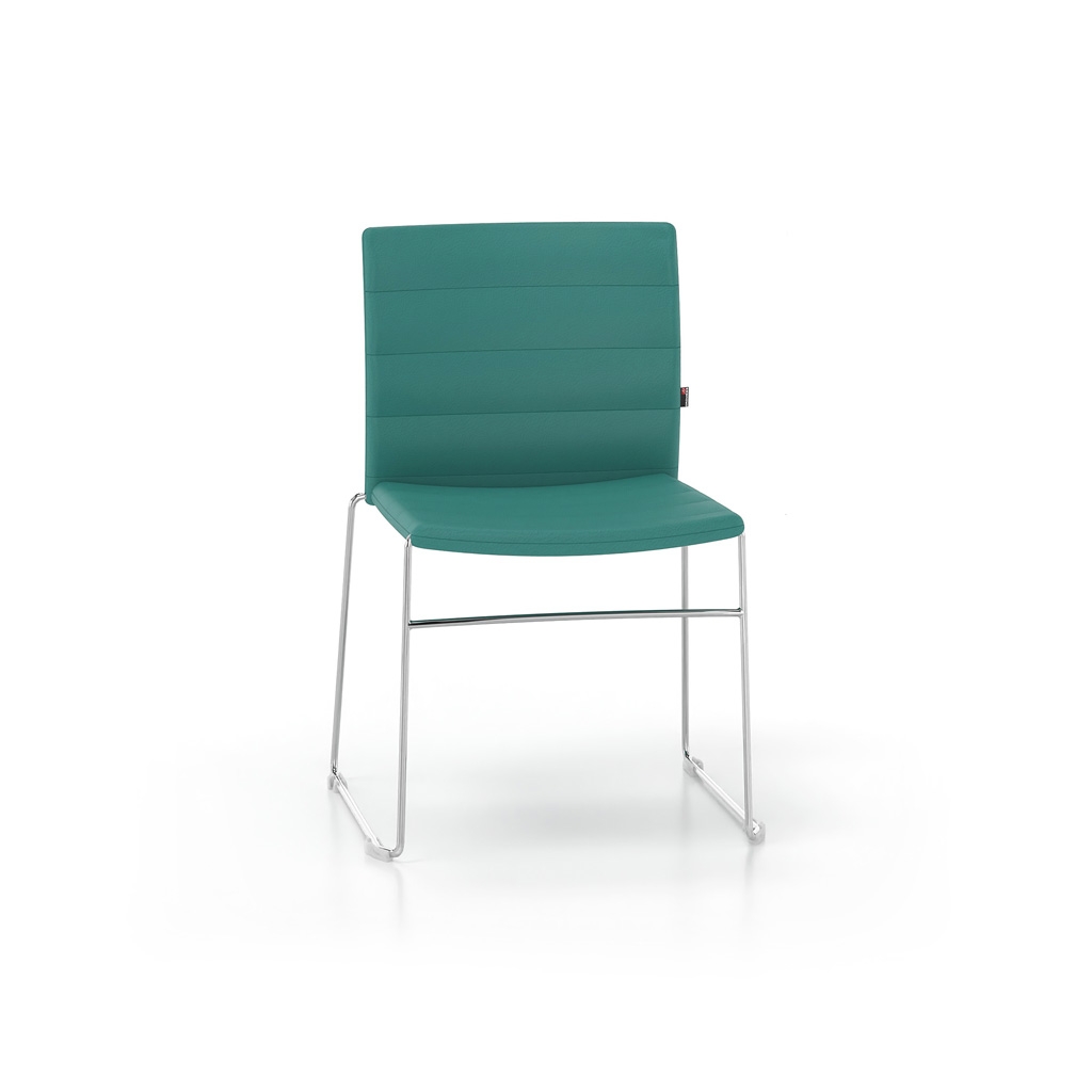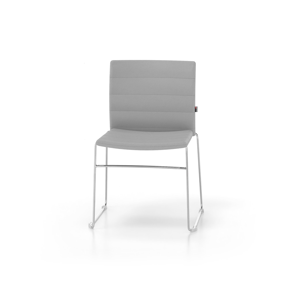 Modern, stackable conference chair with metal, chrome-plated frame and separate seat-back. The ENA series is designed to allow for multiple options, functional and aesthetic, to adapt harmoniously to any space