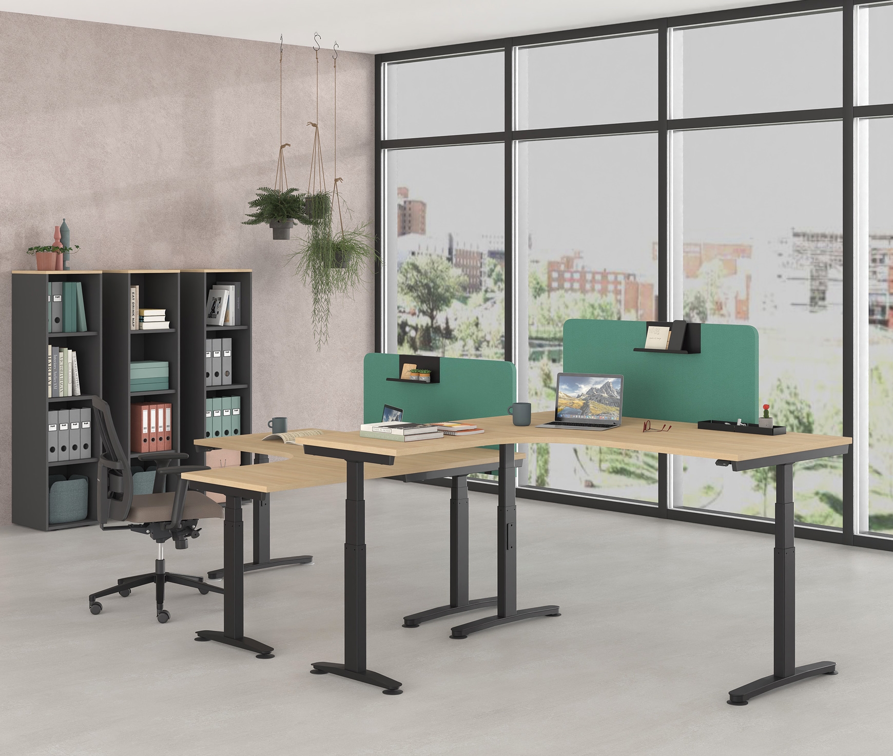 Improve health and well-being during work – studies have shown that being able to switch between standing and sitting positions significantly reduces fatigue, pain and back problems.