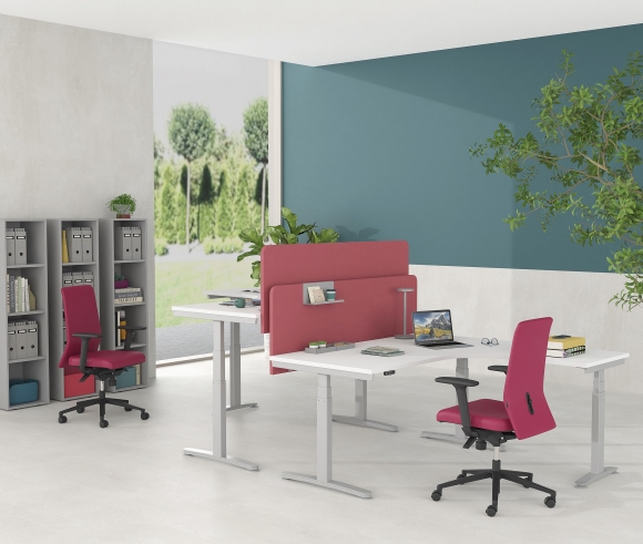 Improve health and well-being during work – studies have shown that being able to switch between standing and sitting positions significantly reduces fatigue, pain and back problems. Like all mechanical systems, the human body obeys physical laws. In the standing position, the load is shared between the ligaments of the vertebrae, in the sitting position the intervertebral discs bear the greatest load. Designing workplaces with a variety of postures and mobility is one way to combat harmful sedentary lifestyles