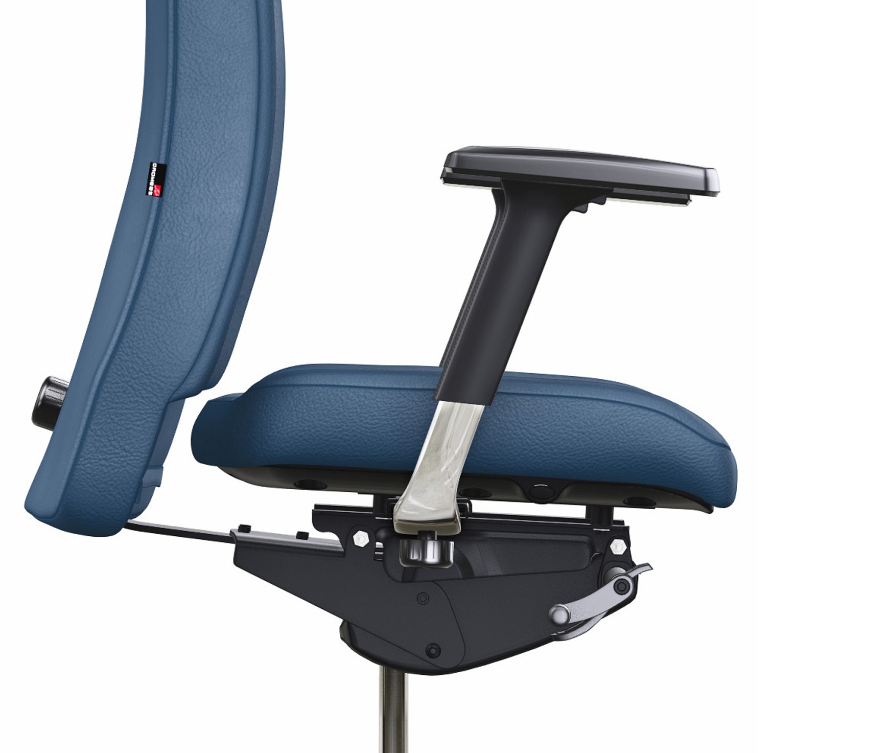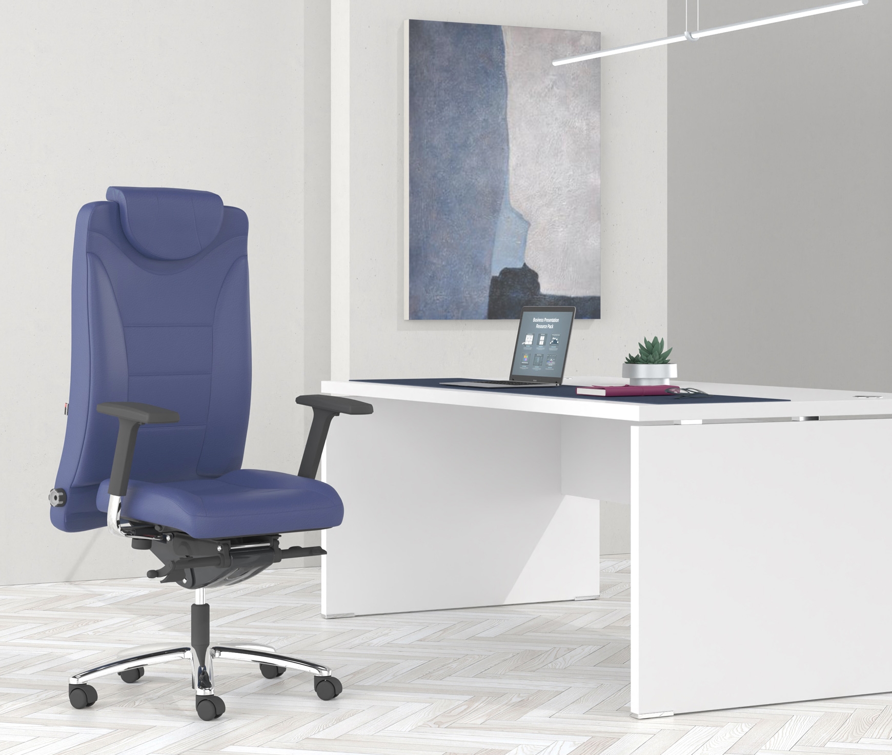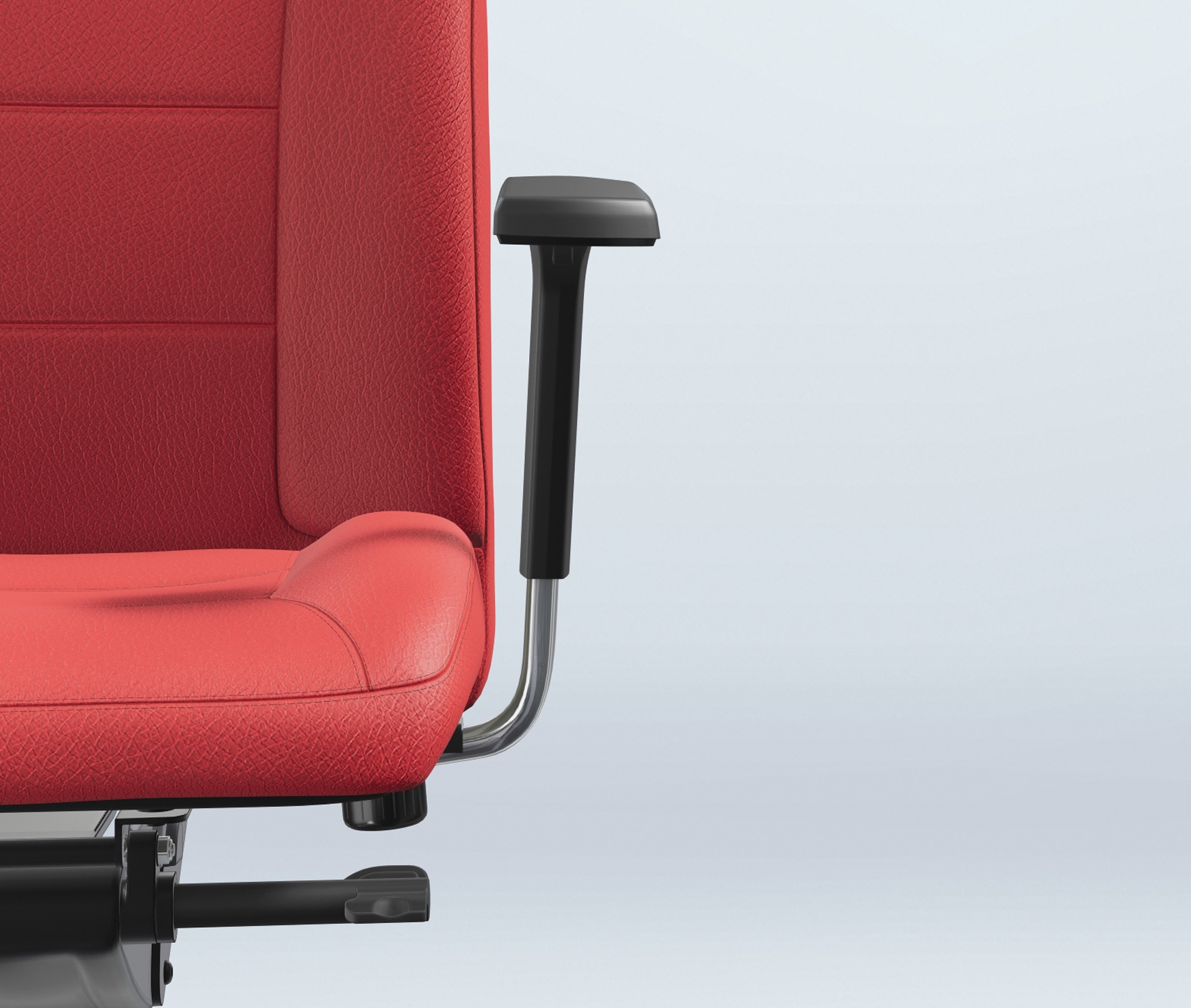 ADJUSTMENTS – The synchronized seat-back movement thanks to the antipanic synchro mechanism, combined with the possibility of locking in 7 different positions, promotes ergonomics during work. The pressure resistance of the back can be adjusted according to personal needs. The height-adjustable lumbar support in combination with the seat depth adjustment allow even better adaptation of the seat to the user's body type. The chrome-plated 4D adjustable armrests feature ultra-soft, skin-friendly padding