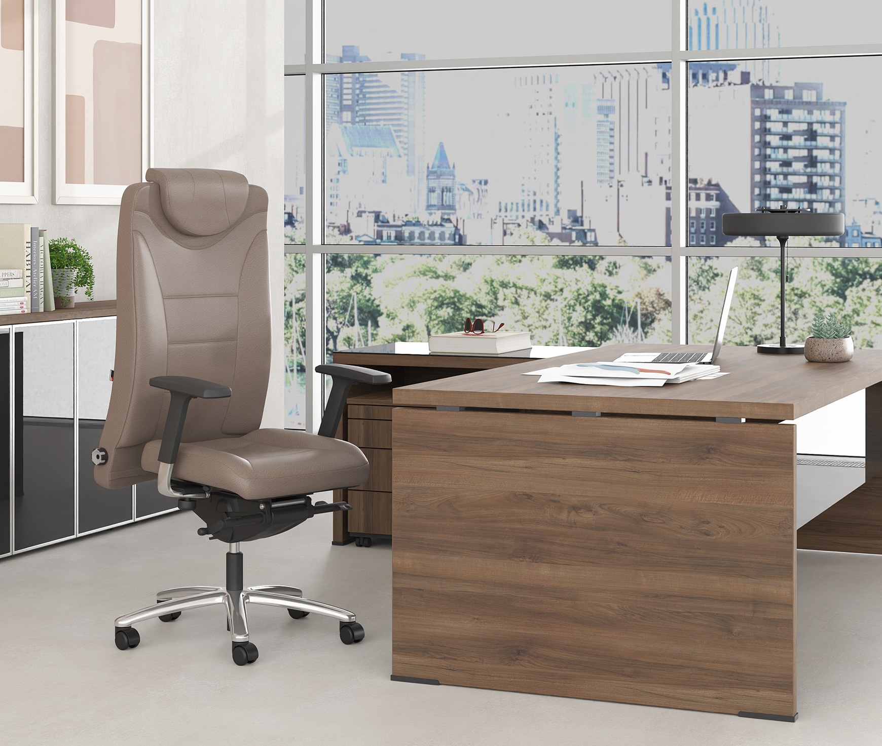 The Apollo executive office chair is an example of elegance and style at the highest level. It offers a simple, modern design combining the greatest possible comfort. The Apollo executive chair was developed primarily for the needs of top management. Since working days can sometimes be long, high quality and comfort are essential, as well as stylish design that gives you joy every day. Thanks to numerous upholstery materials and colors, this chair blends harmoniously into any environment.