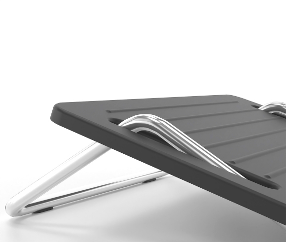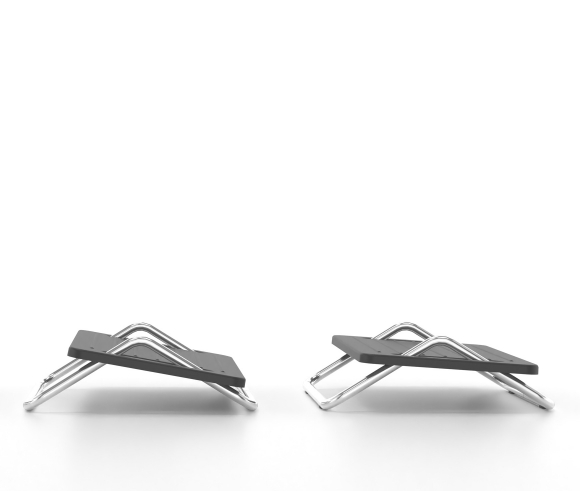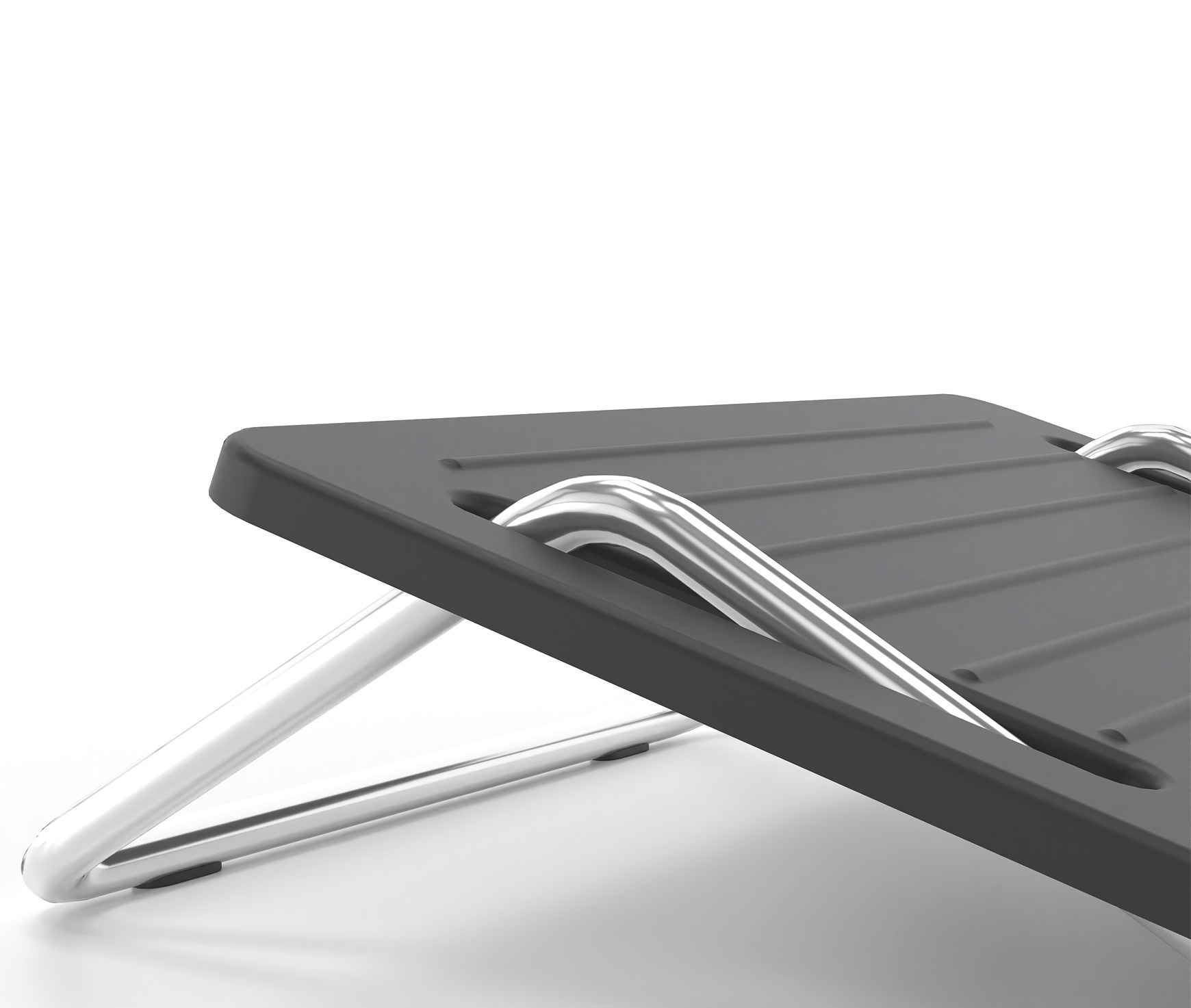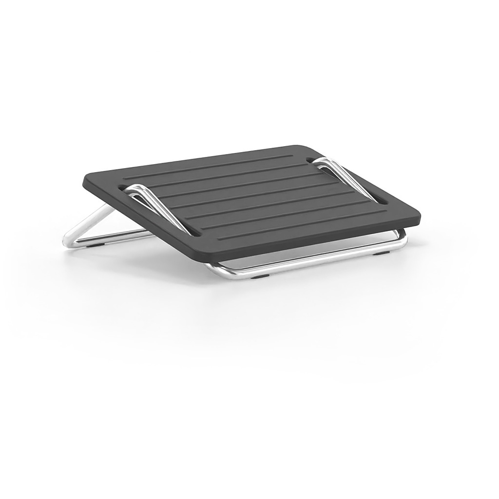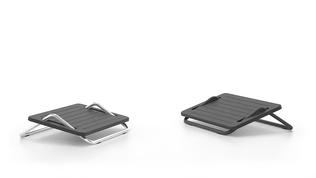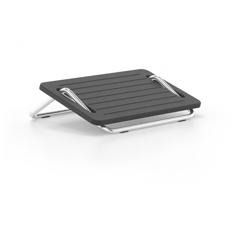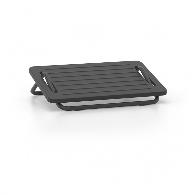 Office footstools are provided in desks that are not adjustable in height or their height is not sufficient. For example, the minimum height adjustment of the desk or that of the chair may in some cases not be sufficient to be able to place both feet flat on the floor. As a result, dangling legs cause an unhealthy working posture due to insufficient support. The footrest compensates for the lack of height difference with the floor and helps to create an ergonomically favorable workplace. It has a metal base made of steel tube with anti-slip plugs. Available painted with electrostatic paint RAL 7021 or chrome plated. The support surface of the legs is non-slip and made of polypropylene.