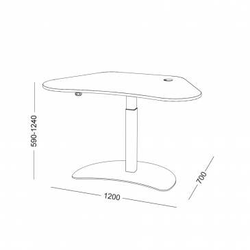 ˃˃ The height adjustment mechanism and the control center are integrated into the vertical support. Height adjustment is achieved by pressing the corresponding buttons on the control stick. The adjustment range corresponds to 650 mm (590-1240 mm)