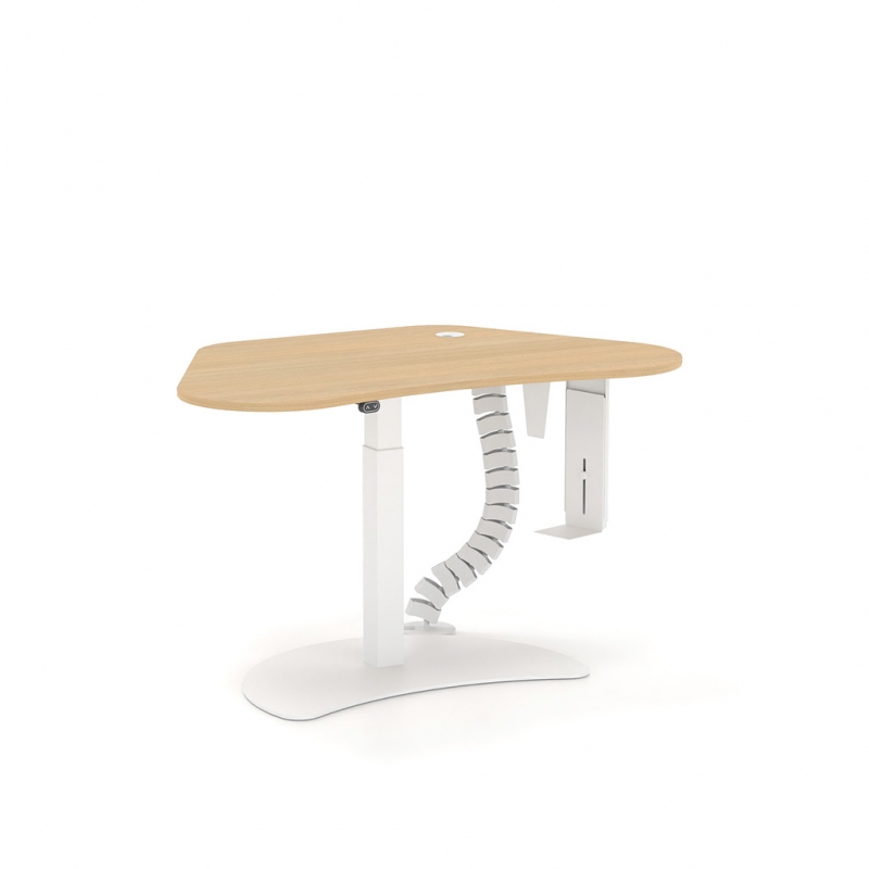 ALMACCINO sets a whole new standard for working at home! Modern, stylish with integrated rosette on the surface and with electric height adjustment for switching between standing and sitting working positions – studies have shown that being able to switch between standing and sitting positions significantly reduces fatigue, pain and back problems. Like all mechanical systems, the human body obeys physical laws. In the standing position, the load is shared between the ligaments of the vertebrae, in the sitting position the intervertebral discs bear the greatest load. Designing workplaces with a variety of postures and mobility is one way to combat harmful sedentary lifestyles.