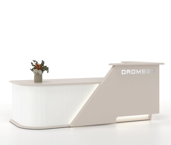 The new CALYPSO reception desk by DROMEAS blends minimalism with refined luxury. The harmonious balance between matte surfaces and natural wood creates a welcoming atmosphere, while the clean lines and integrated LED lighting exude elegance and design excellence. Calypso transforms every reception area into an experience of aesthetics and functionality.
