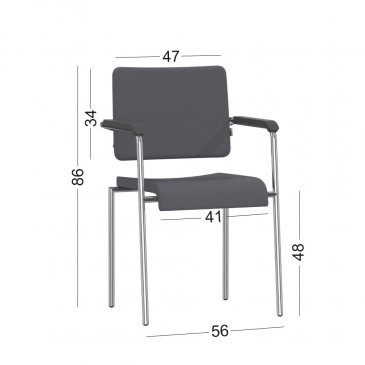 The OMEGA visitor’s seat combines comfort with elegance! It is stackable, its frame rests on four legs and has a separate seat - back. The support arms are covered in semi-hard polyurethane for greater comfort.
