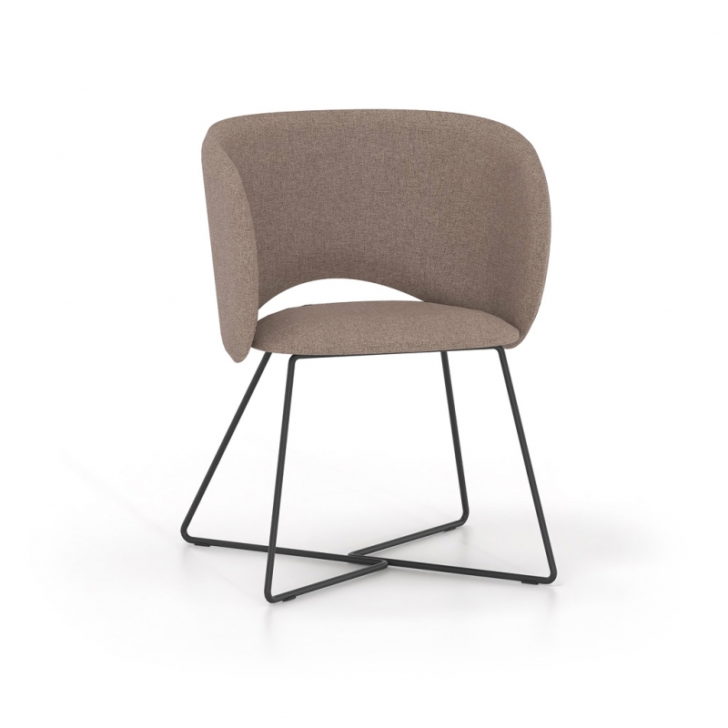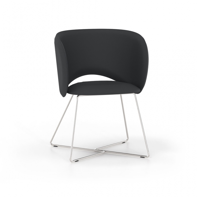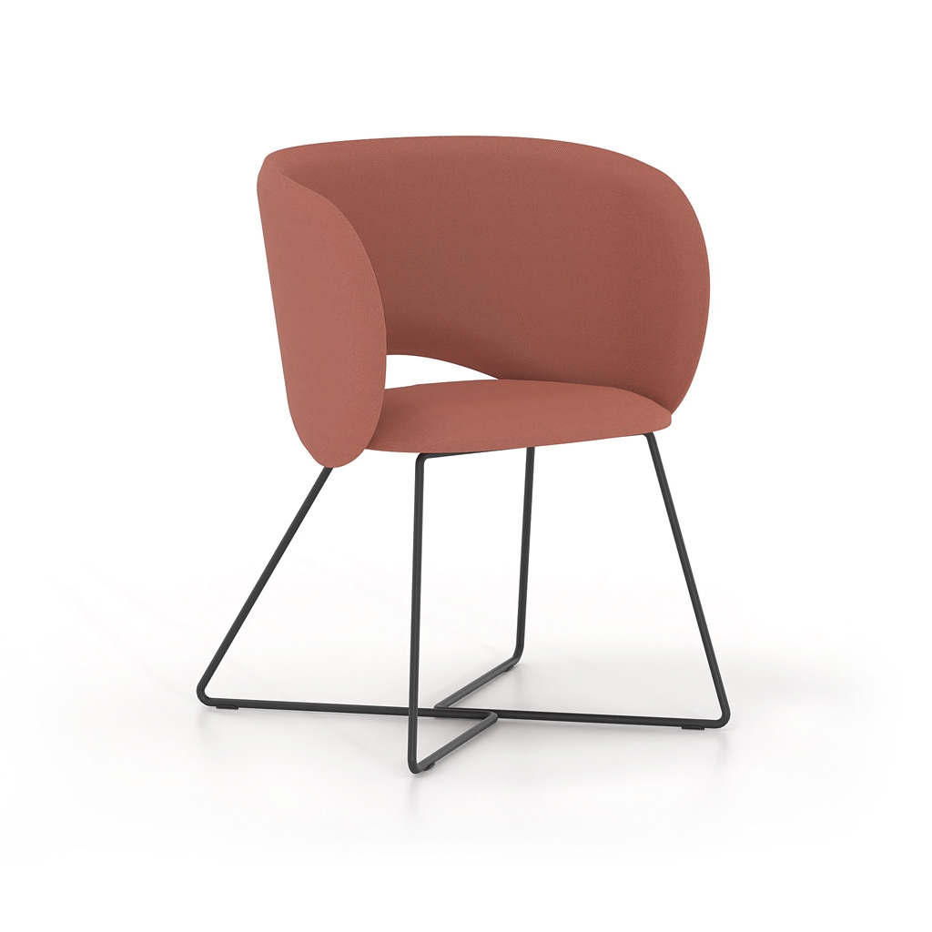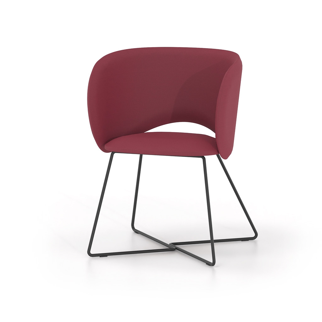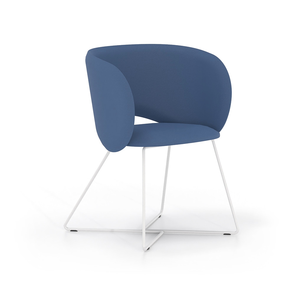 It is available with either a fixed metal base or a five-star swivel base with castors and height adjustment, covering a wide range of uses—from meeting rooms and waiting areas to reception offices and professional workspaces with elevated aesthetics. The extensive selection of upholstery and colors allows for seamless integration into any design scheme.