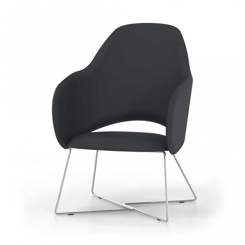 Its geometric metal base, available in a variety of finishes, provides both stability and subtle elegance, while the wide selection of fabrics and colors ensures full adaptability to any architectural or interior design concept. From corporate lobbies and waiting areas to hotels, multi-purpose spaces, and stylish residential interiors, FORMA PLUS adds character to any setting.