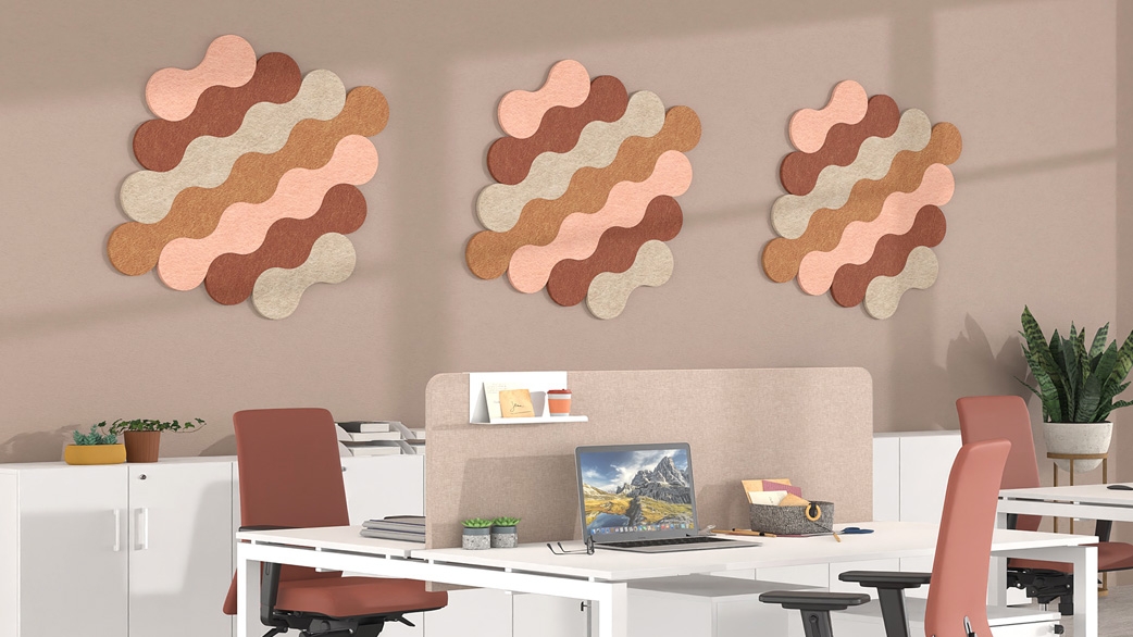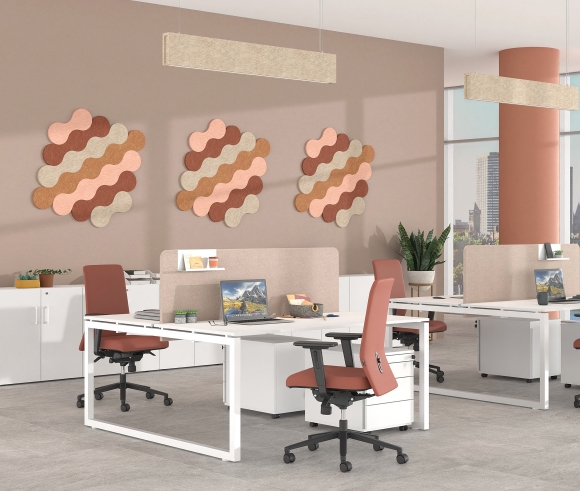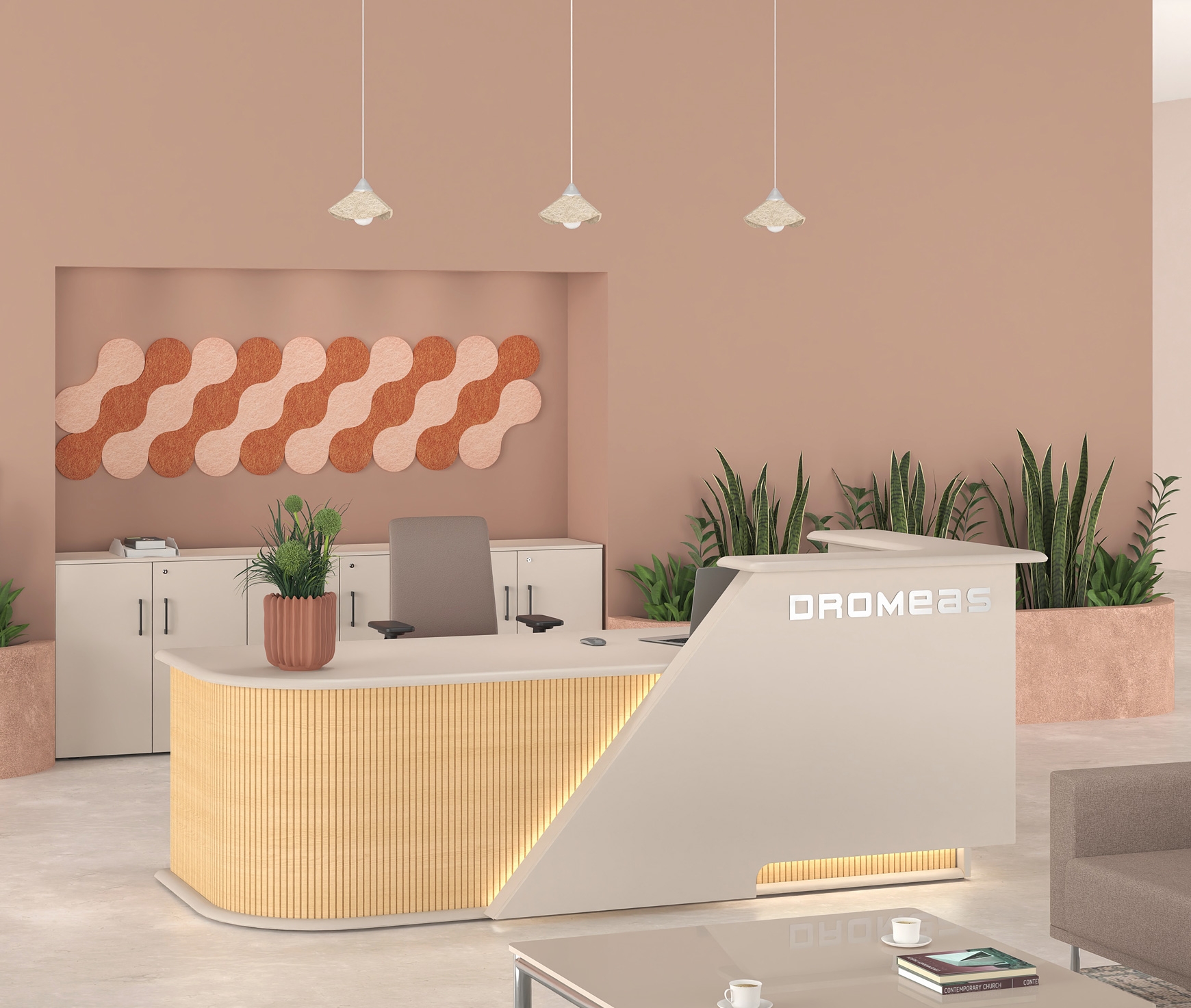 DROMEAS acoustic systems provide optimal sound absorption on the walls and ceilings where they are installed. They improve room acoustics by absorbing sound waves, control reverberation, and reduce annoying noise, particularly in spaces with a high concentration of people, where sound reflection is a common issue. Simultaneously, their excellent aesthetics, with distinctive value, contribute to creating a pleasant working environment.