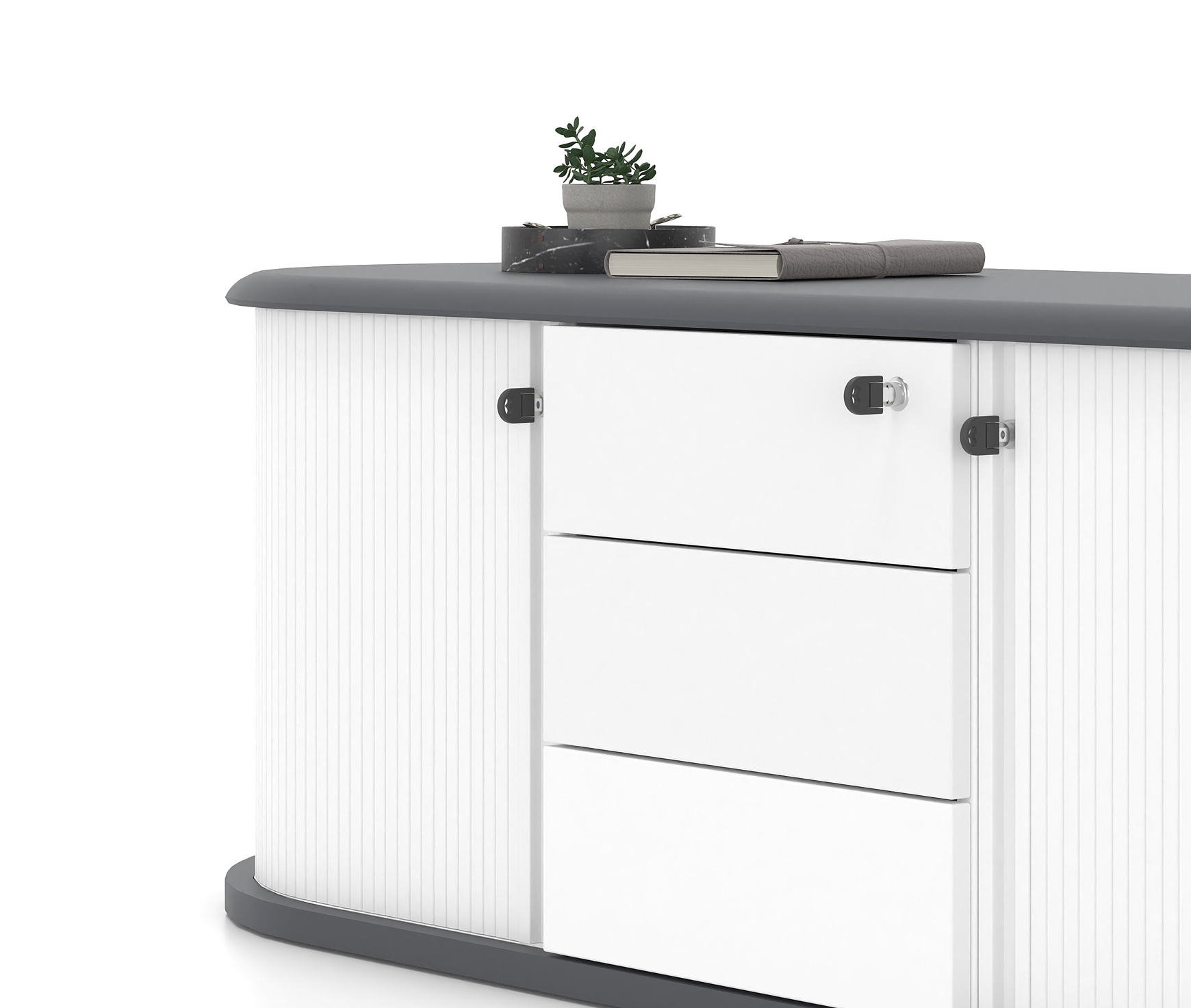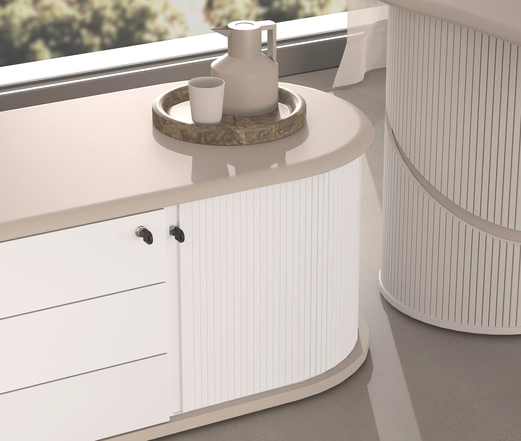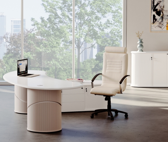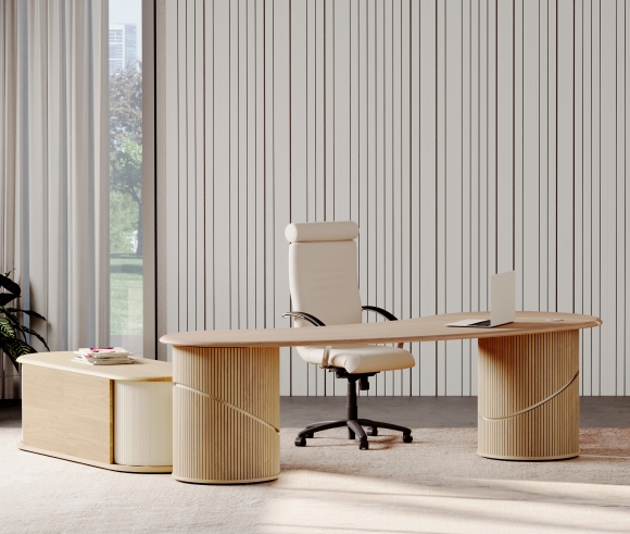The Anasa office cabinet is an elegant expression of balance and sophistication, inspired by the concept of breath—as suggested by its name in Greek. Just as breath is essential for life, the Anasa cabinet combines flow with purpose in a comfortable and natural form. The soft lines and feminine curves of the cabinet create a harmonious union of aesthetics and functionality.