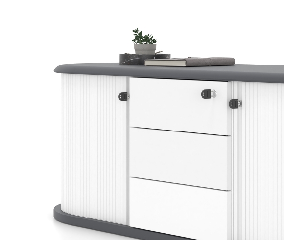 ORGANIC DESIGN - The Anasa cabinet is characterized by organic lines and feminine curves, creating a smooth and natural flow that seamlessly integrates into any professional environment. Its refined design imparts a sense of tranquility and elegance while highlighting both quality and innovation.