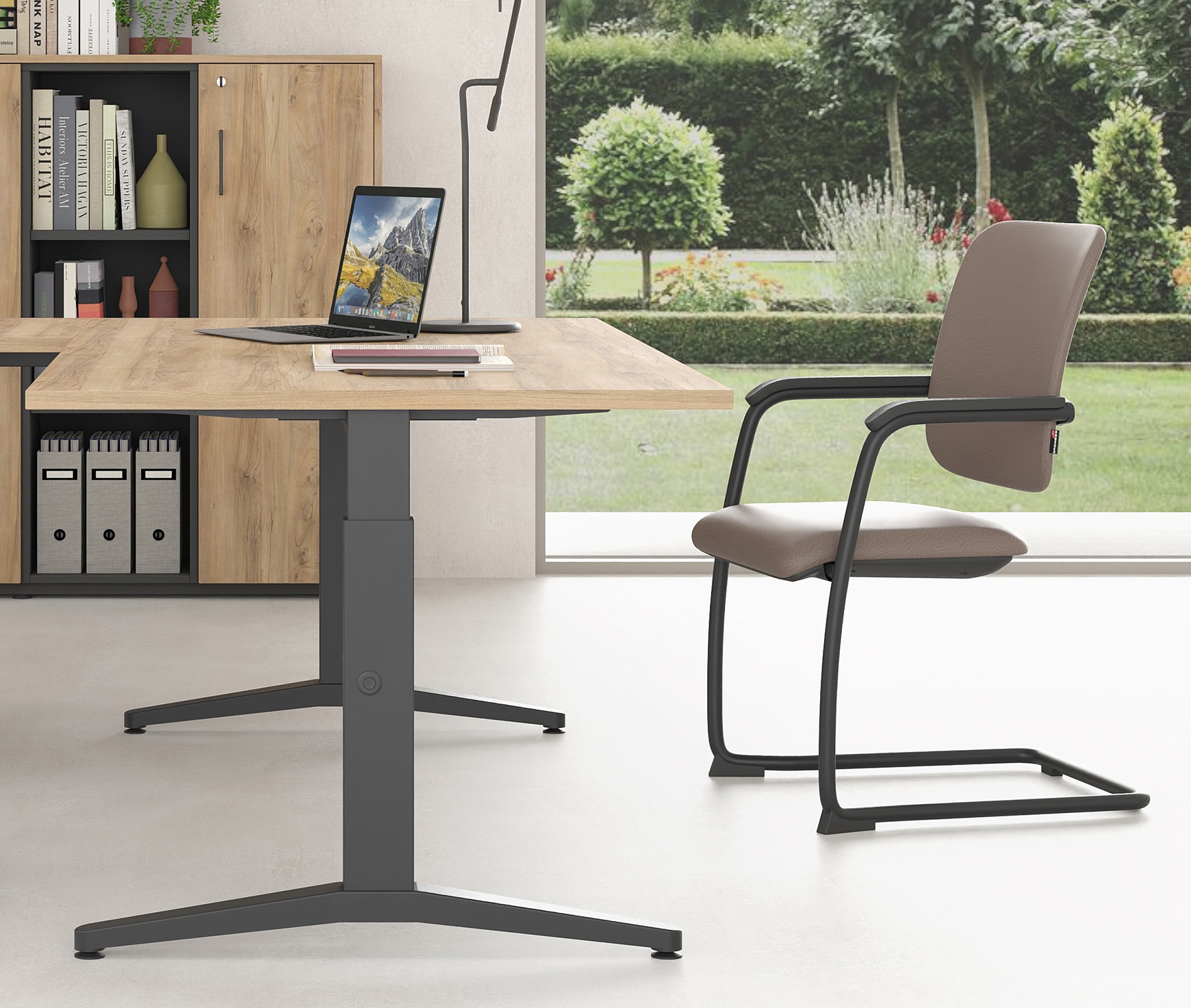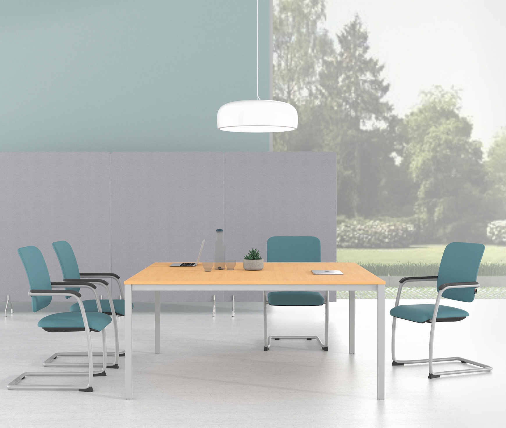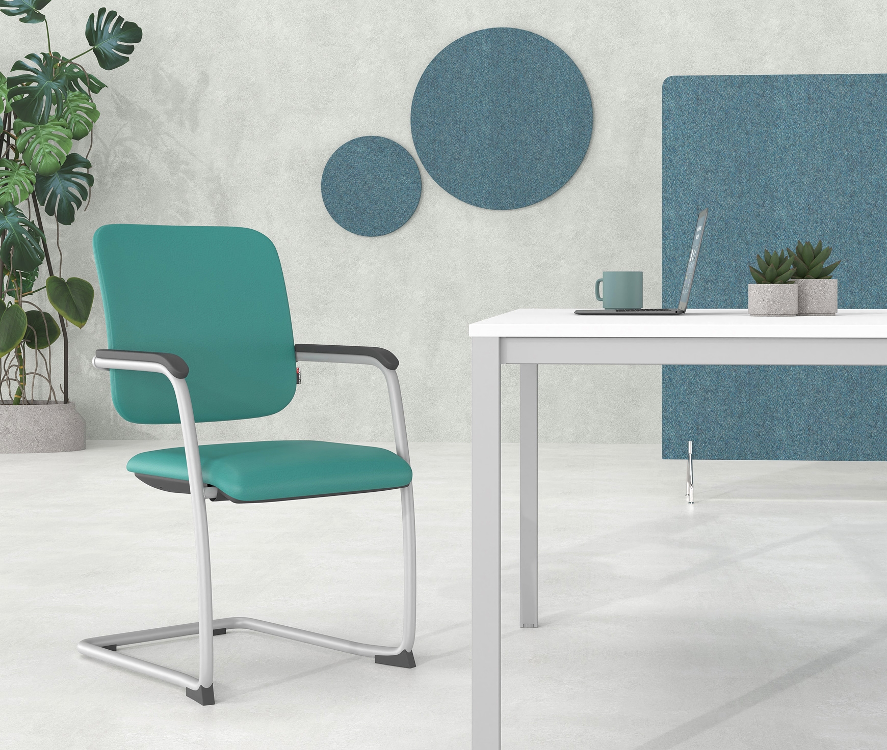 The PORTO Visitor’s chair has a stackable S-shaped metal frame with a separate seat-back. The back is available in mesh or polyurethane covered with fabric or leather. It is equipped with non-slip soles to protect the floor. The stackable frame makes it ideal for offices and conference rooms