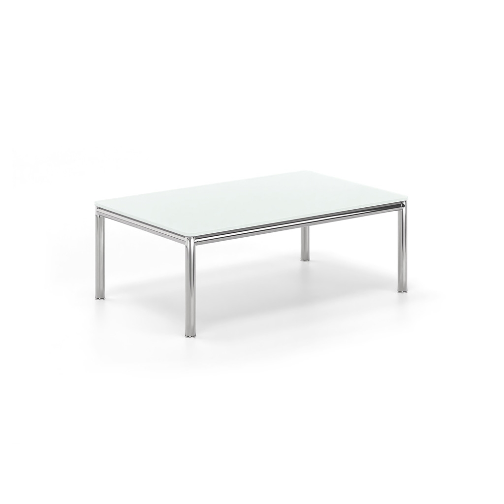 A working environment with an original character creates a feeling of well-being and creativity. The minimal high-tech construction and the elegant presence in the space characterize the coffee table of the SLIM series. The surface is made of extra clear glass and the frame is made of INOX circular section tube. The connection of the individual metal elements is achieved thanks to the die-cast aluminum nodes. The total absence of welds allows for complete assembly and disassembly.