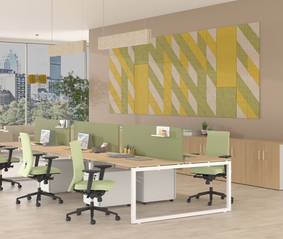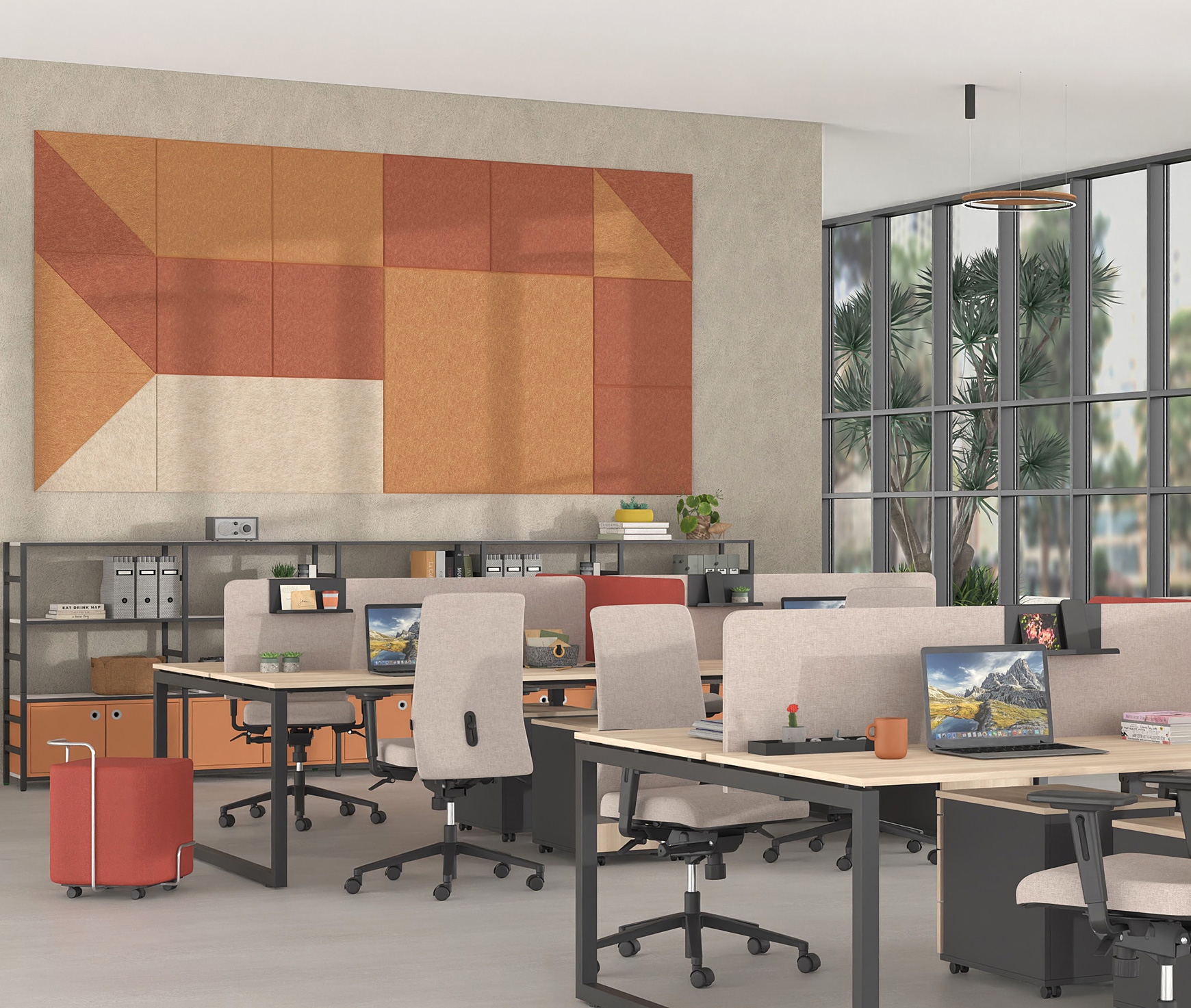 DROMEAS acoustic systems provide optimal sound absorption on the walls and ceilings where they are installed. They improve room acoustics by absorbing sound waves, control reverberation, and reduce annoying noise, particularly in spaces with a high concentration of people, where sound reflection is a common issue. Simultaneously, their excellent aesthetics, with distinctive value, contribute to creating a pleasant working environment.