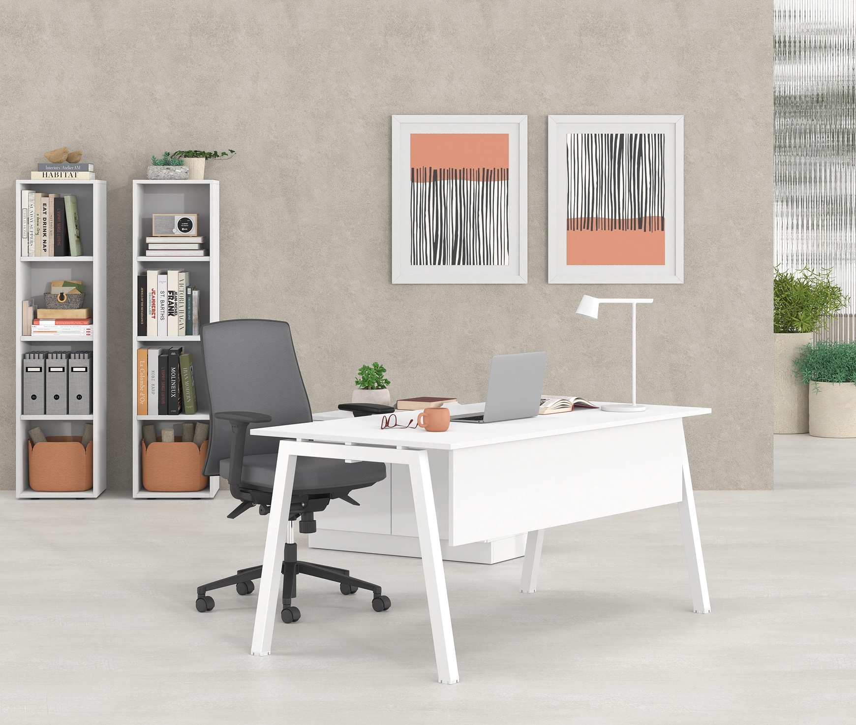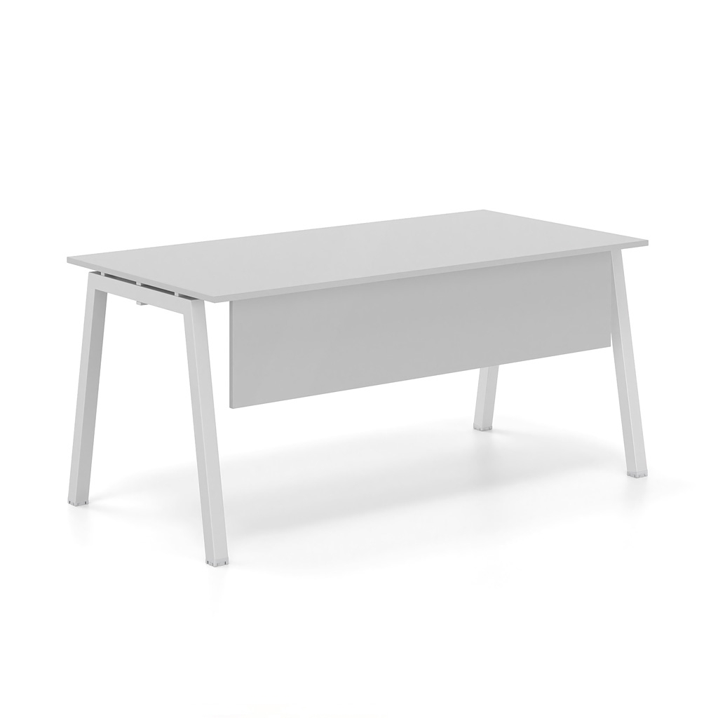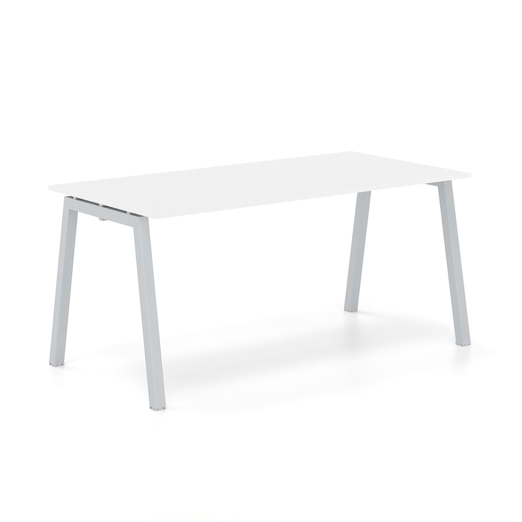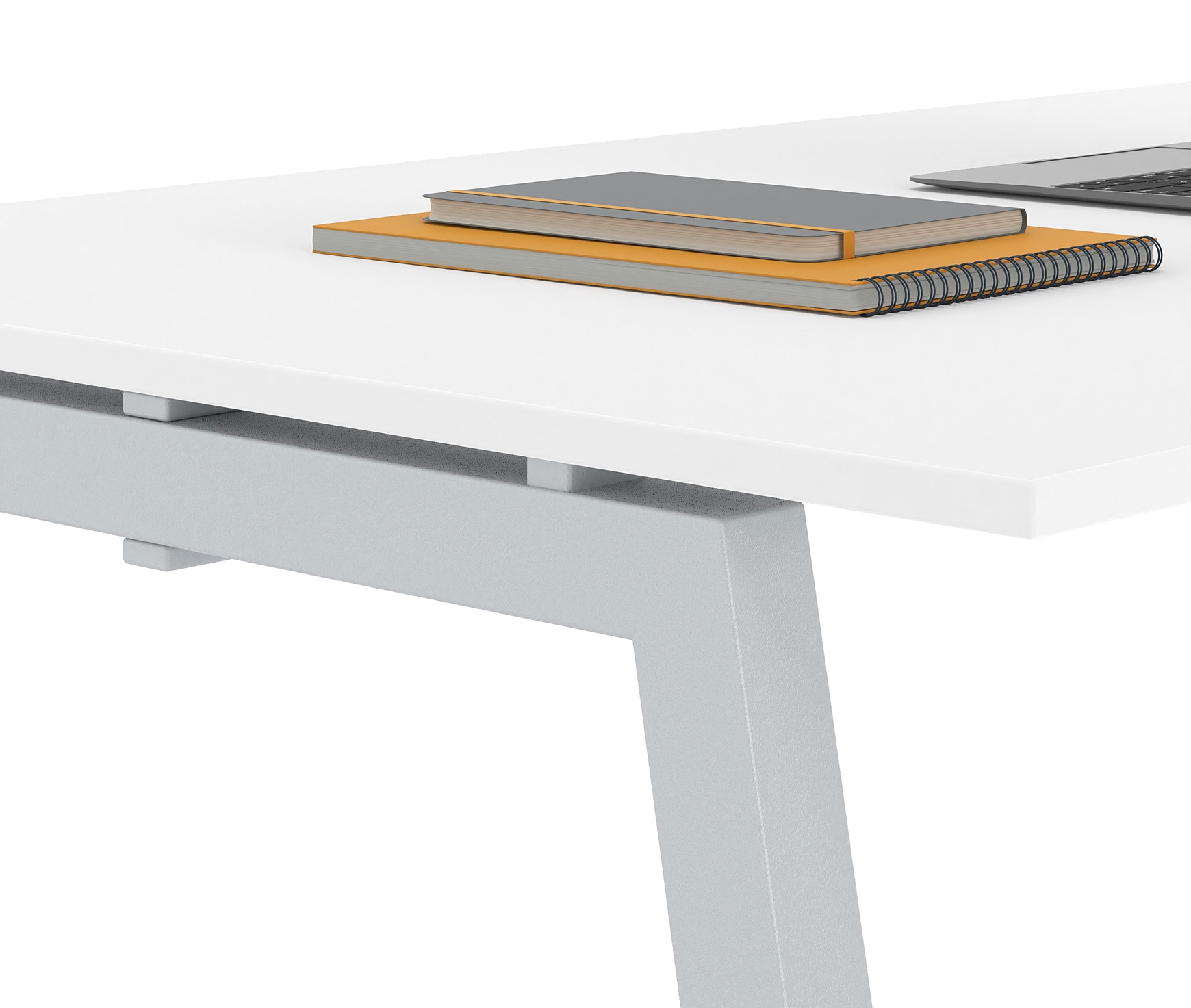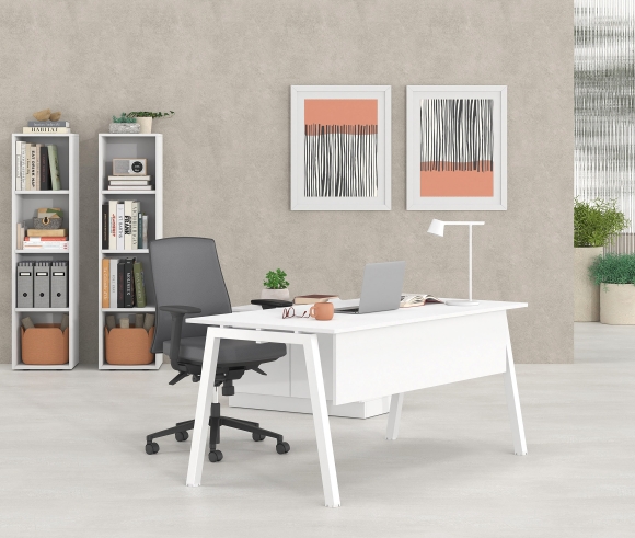The NEO series is characterized by simplicity and modern design. It is ideal for spaces that require a modern aesthetic approach. It impresses with its simple, clear design expression as well as its high quality. The profile of the series is completed by the optically floating work surface above the metal support frame. The NEW A version differs from the classic Π design of the vertical supports. With the possibility of configuration in color and size, the NEO A desks are ideally adapted to any interior space.