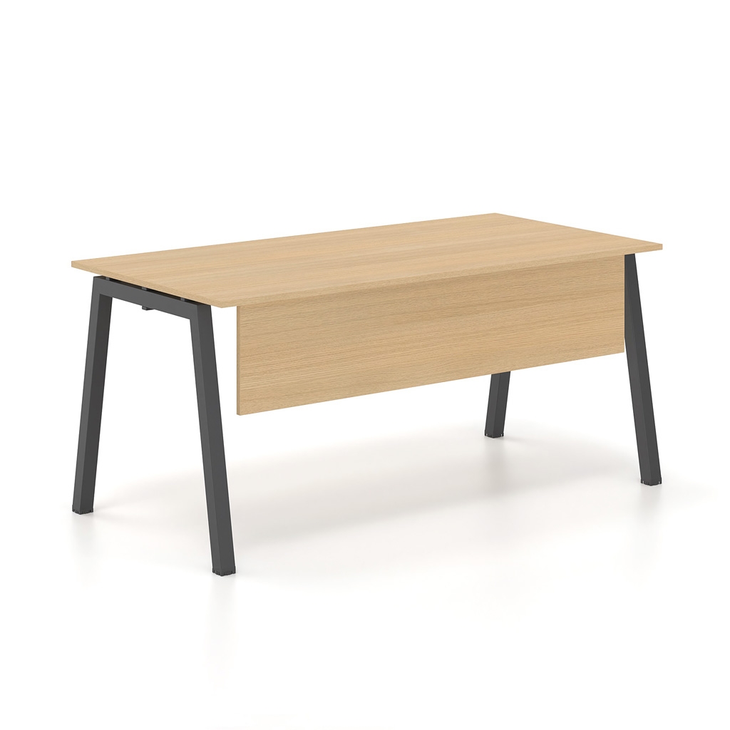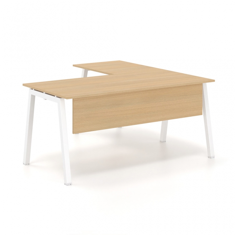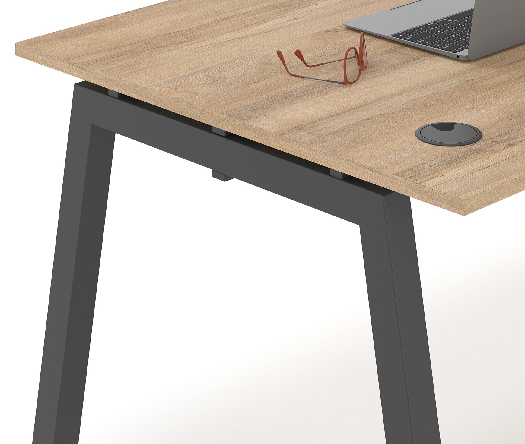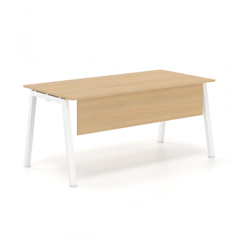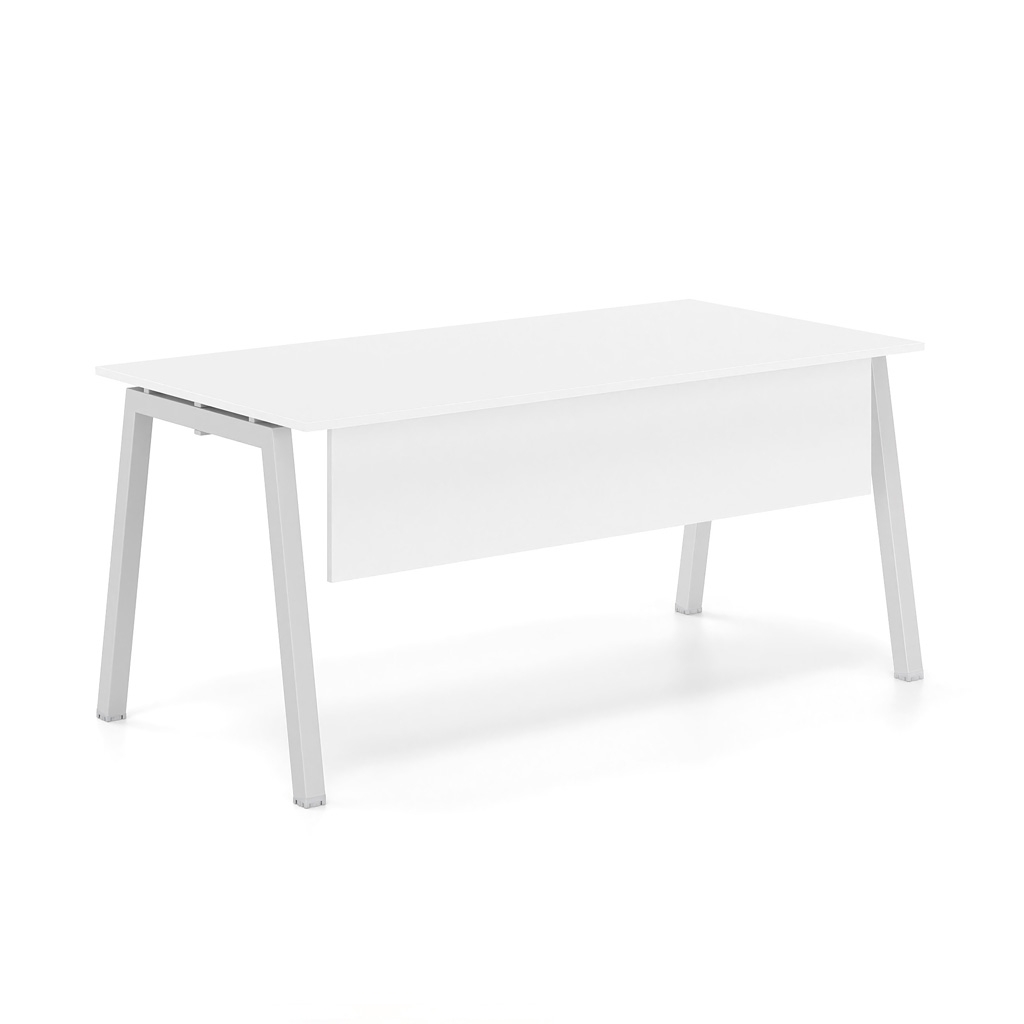 The NEO series is characterized by simplicity and modern design. It is ideal for spaces that require a modern aesthetic approach. It impresses with its simple, clear design expression as well as its high quality. The profile of the series is completed by the optically floating work surface above the metal support frame. The NEW A version differs from the classic Π design of the vertical supports. With the possibility of configuration in color and size, the NEO A desks are ideally adapted to any interior space.