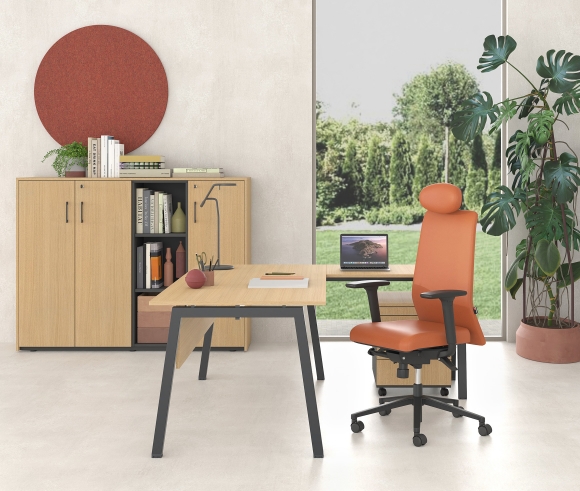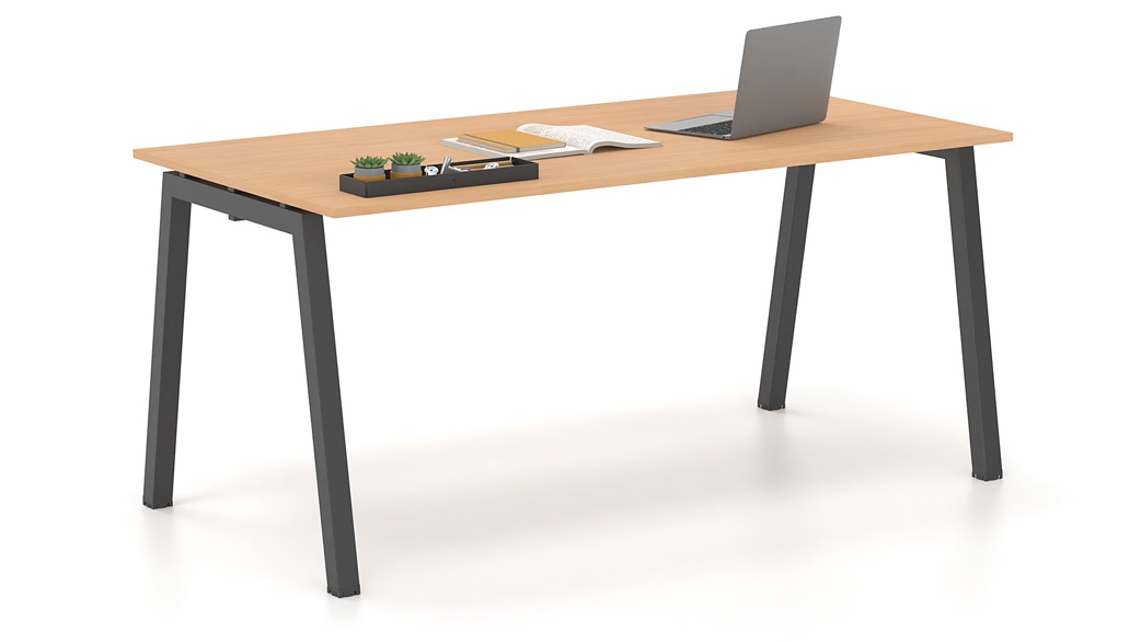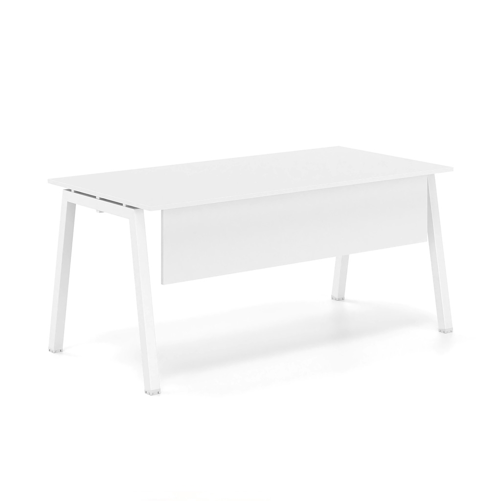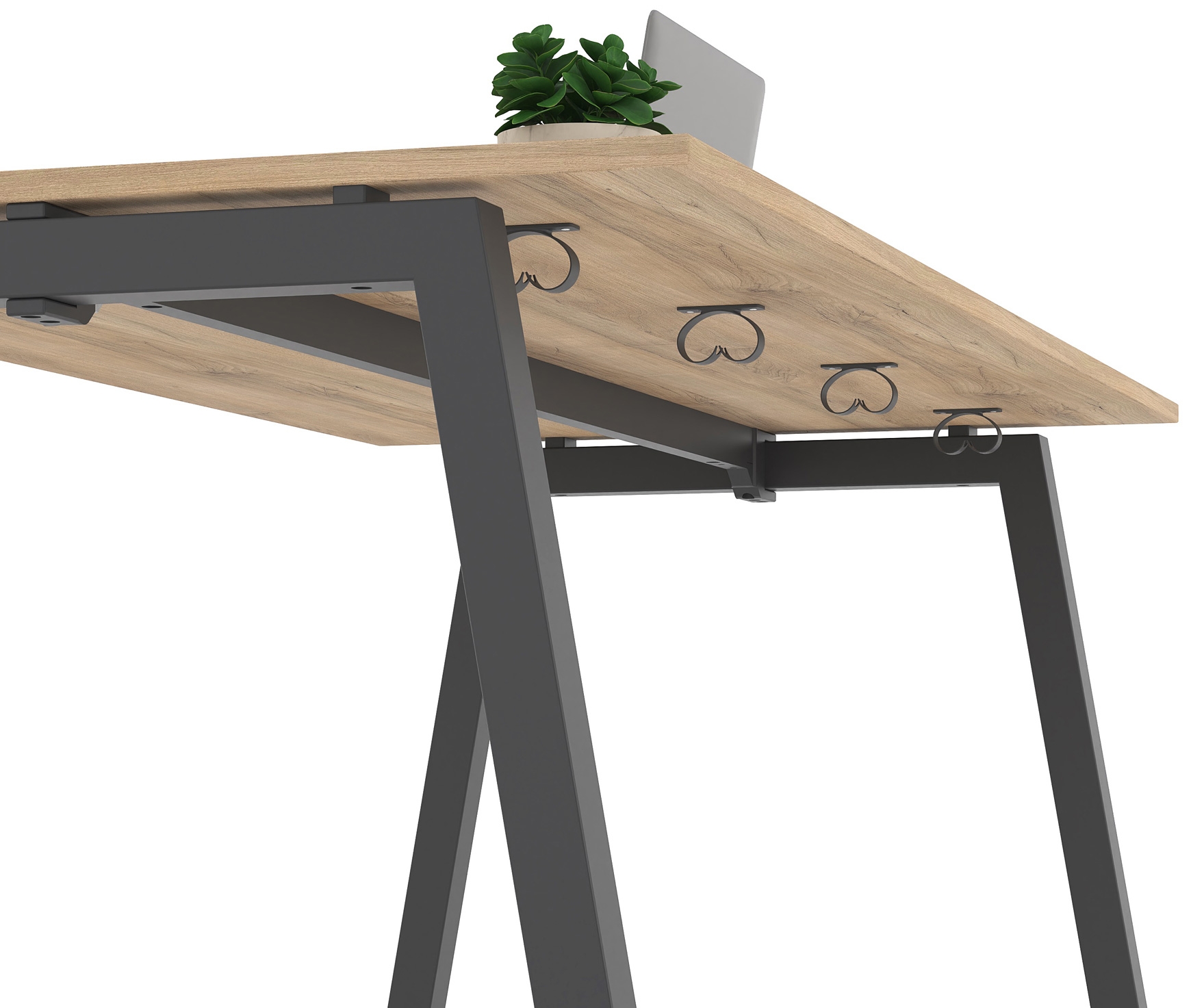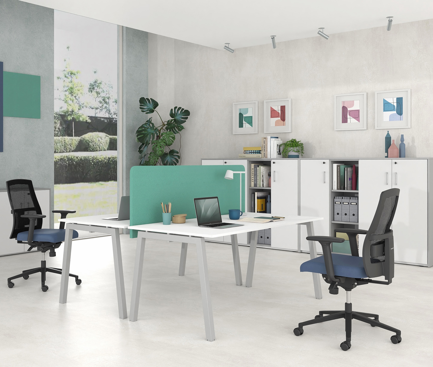 The NEO series is characterized by simplicity and modern design. It is ideal for spaces that require a modern aesthetic approach. It impresses with its simple, clear design expression as well as its high quality. The profile of the series is completed by the optically floating work surface above the metal support frame. The NEW A version differs from the classic Π design of the vertical supports. With the possibility of configuration in color and size, the NEO A desks are ideally adapted to any interior space.