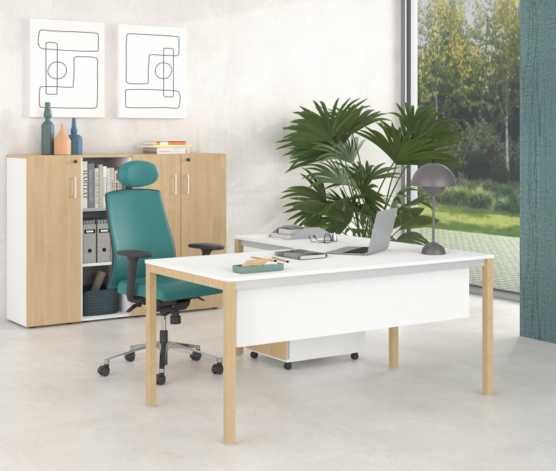 The minimalist design of the TETRA WOOD ALL desk series allows it to be integrated into both modern and classic work environments. The frame consists of a particularly beautiful mix of materials, metal and wood. Thanks to the wide variety of dimensions, the desks can be integrated both in the office and at home. They have a simple and easy way of assembly, as a total of eight (8) screws are required to attach the brackets to the already installed metal frame. The supports and side transoms are lined with beech wood which is varnished with transparent varnish.