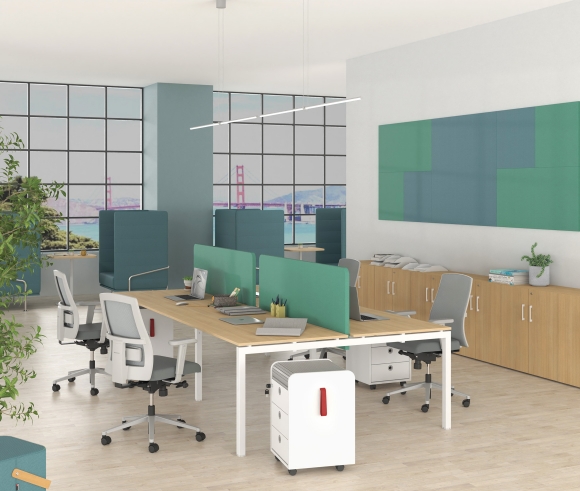 SMOOTH LINES – The NEO series is characterized by simplicity and modern design. The profile of the series is completed by the optically floating work surface above the metal support frame