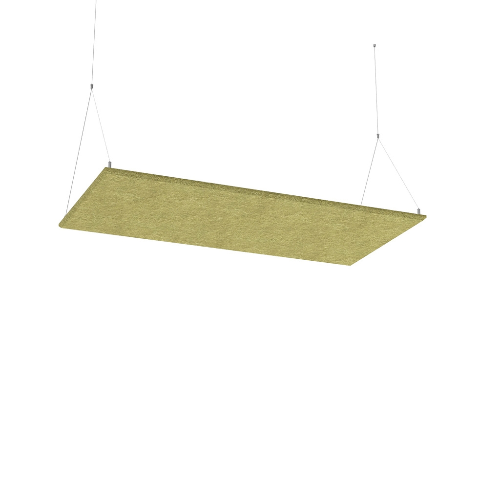 Les panneaux acoustiques suspendus au plafond sont disponibles en formes rectangulaire et carrée. Également fabriqués en feutre 100 % PET d’une épaisseur de 18 mm, ils offrent une forte absorption sonore et un équilibre esthétique dans l’espace. La suspension au plafond se réalise via un système de suspension réglable en hauteur, permettant l’adaptation aux besoins de chaque environnement.