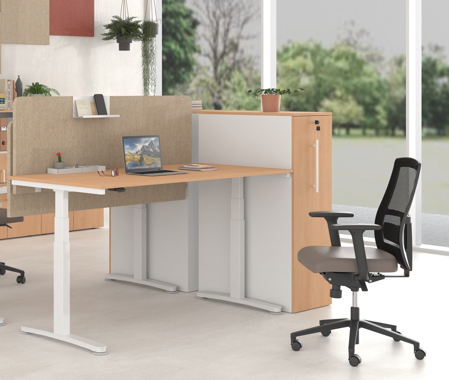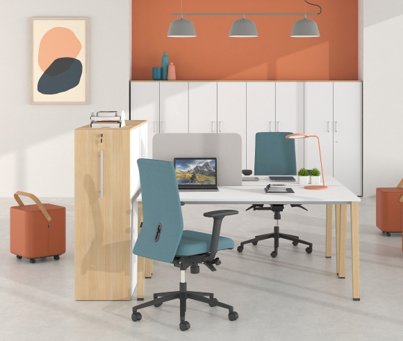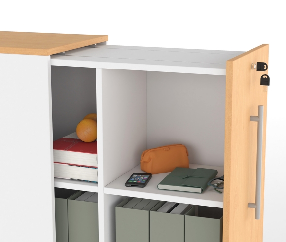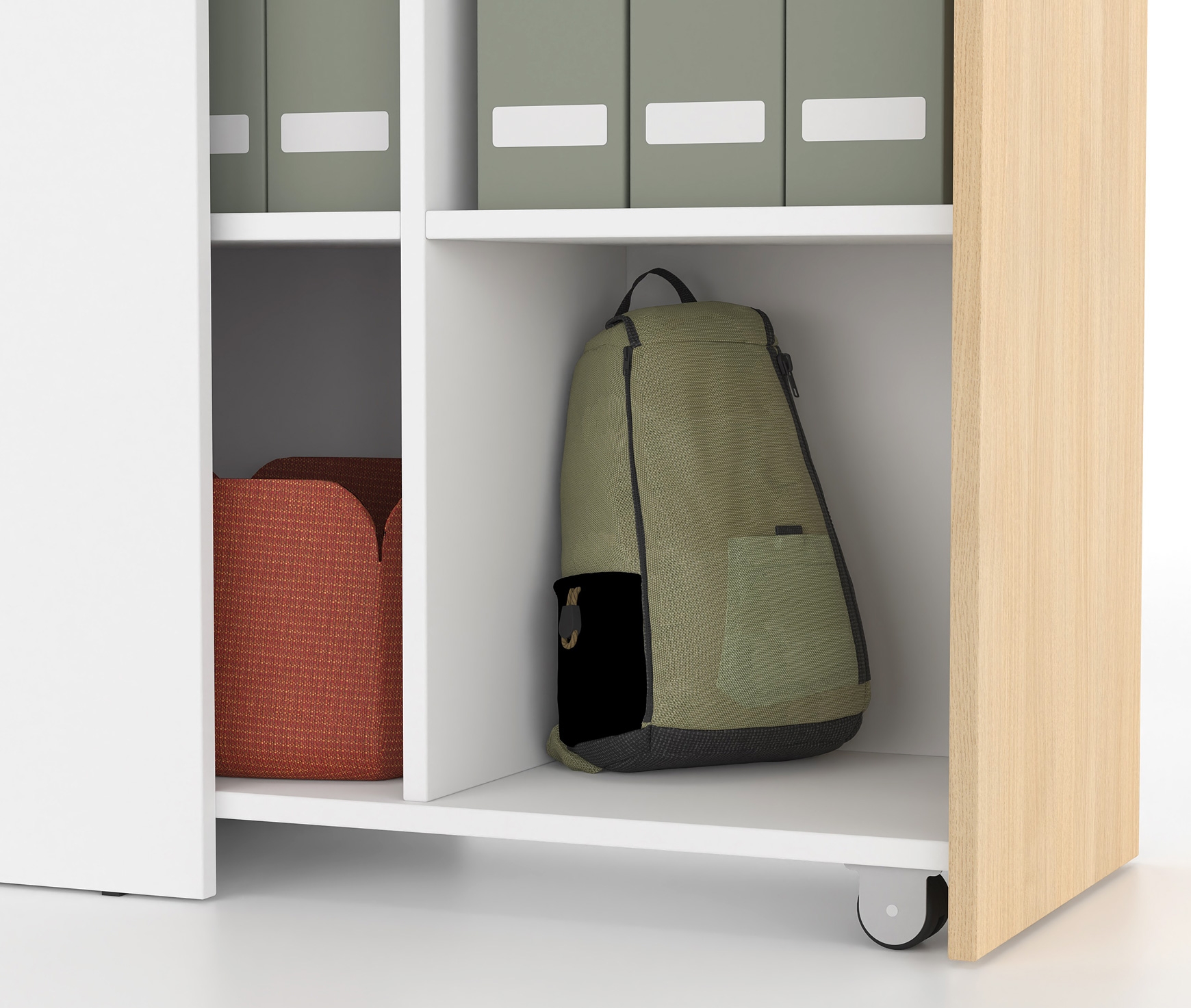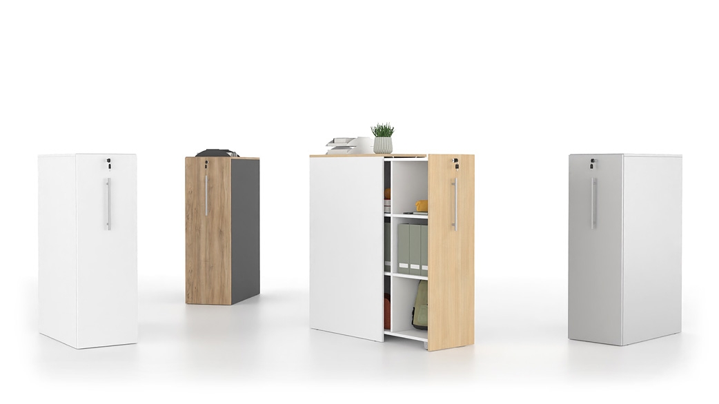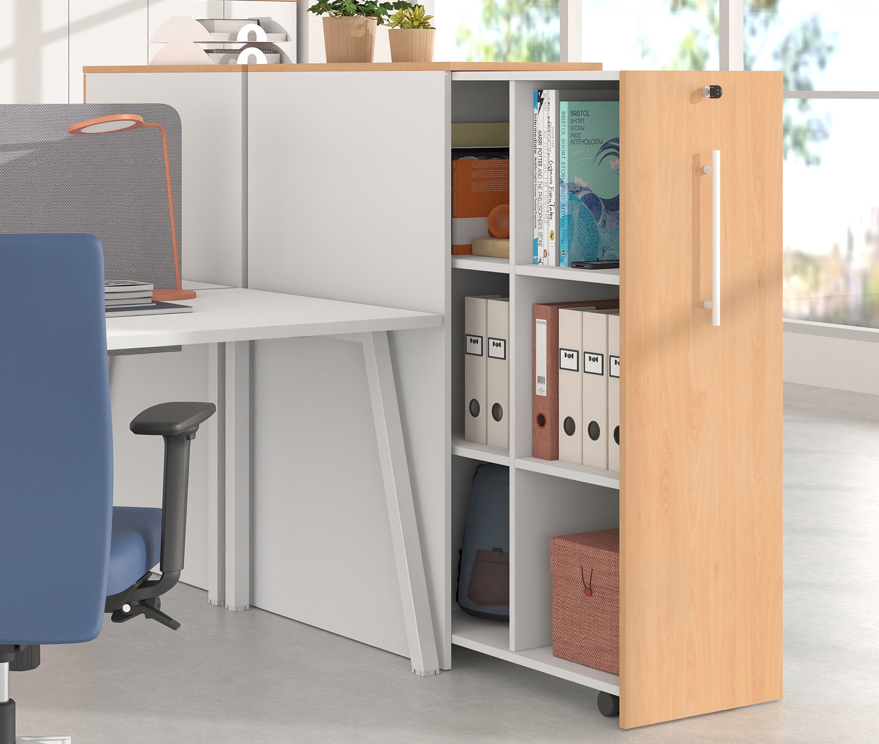 Les armoires Pull out offrent un espace de rangement tout en offrant de l'intimité, grâce à l'extension de l'armoire coulissante qui sépare efficacement deux postes de travail. Avec un verrouillage intégré pour protéger les objets stockés contre tout accès non autorisé