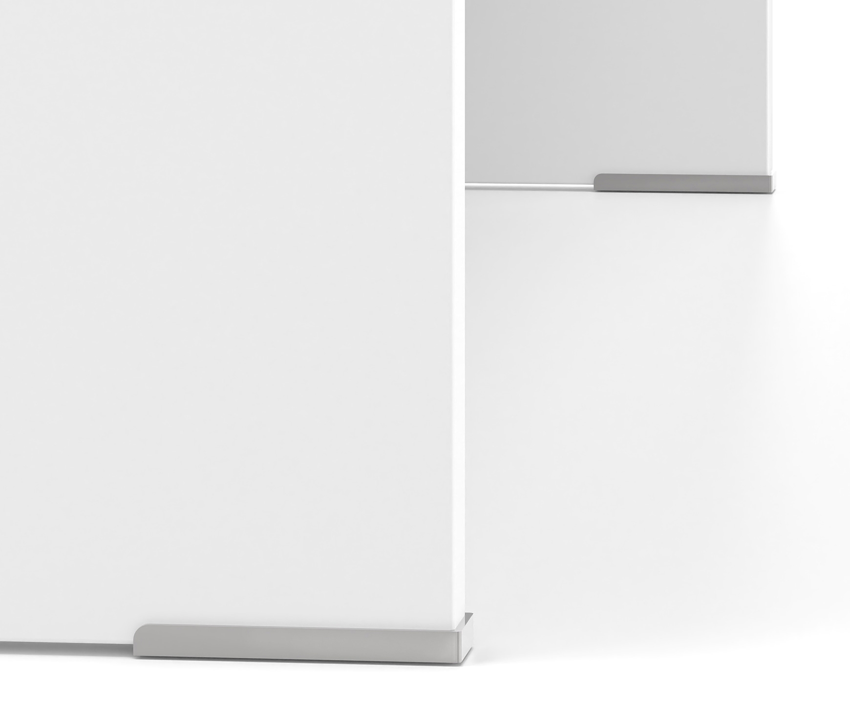 Design dynamique, présence élégante dans l'espace et fonctionnalité caractérisent le bureau de direction VIP. Ces éléments, combinés à l'élégante voile de fond en verre, font de cette option un incontournable pour tout dirigeant qui vise le succès. De plus, l'extension qui peut être intégrée avec l'ajout d'un caisson, crée un bureau de direction axé sur la fonctionnalité et l'esthétique élevée.