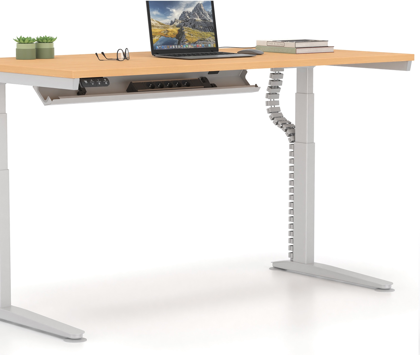 CERTIFICATION TÜV GS, ANGE BLEU, SANS PVC – Les bureaux réglables en hauteur présentent souvent des problèmes de stabilité du système de levage en position haute. Parallèlement, des revêtements en PVC sont utilisés sur les parties électriques avec des plastifiants nocifs pour la santé.