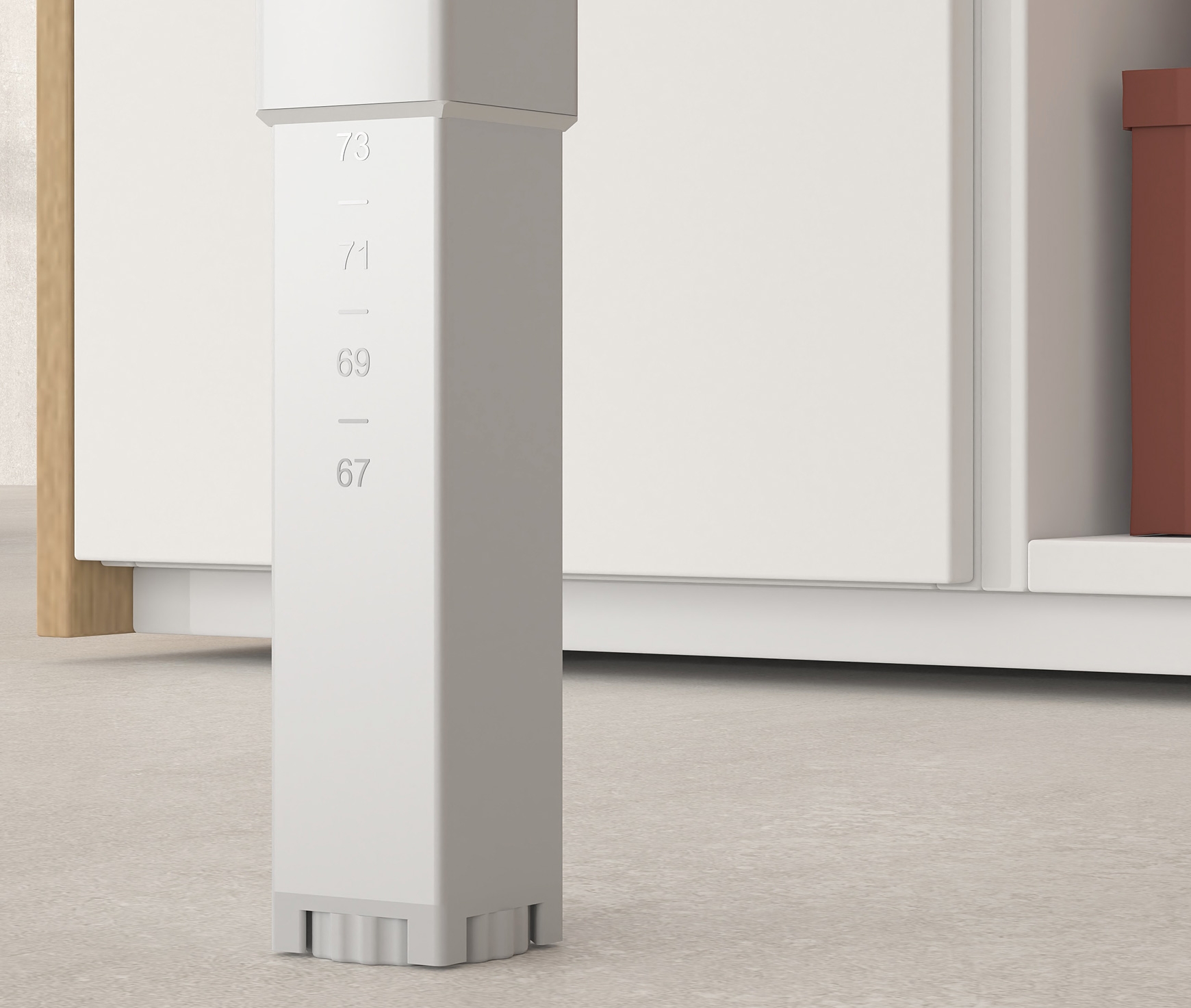 ERGONOMIE – Hauteur du bureau réglable 650-850 mm grâce aux supports télescopiques. Les vérins de réglage intégrés assurent la stabilité sur les sols inégaux