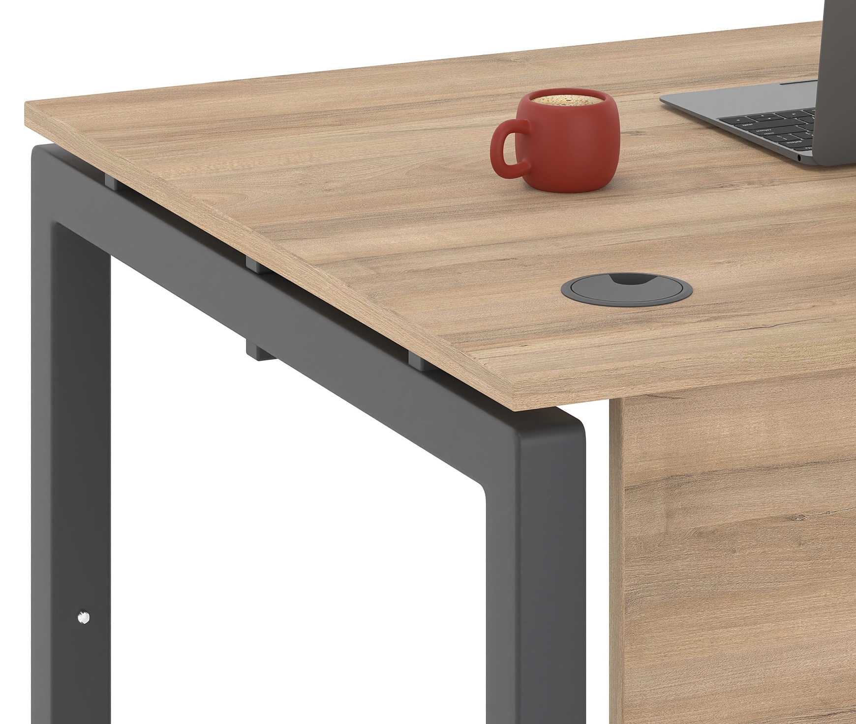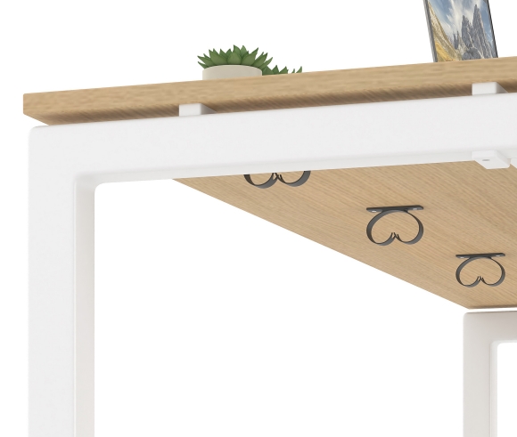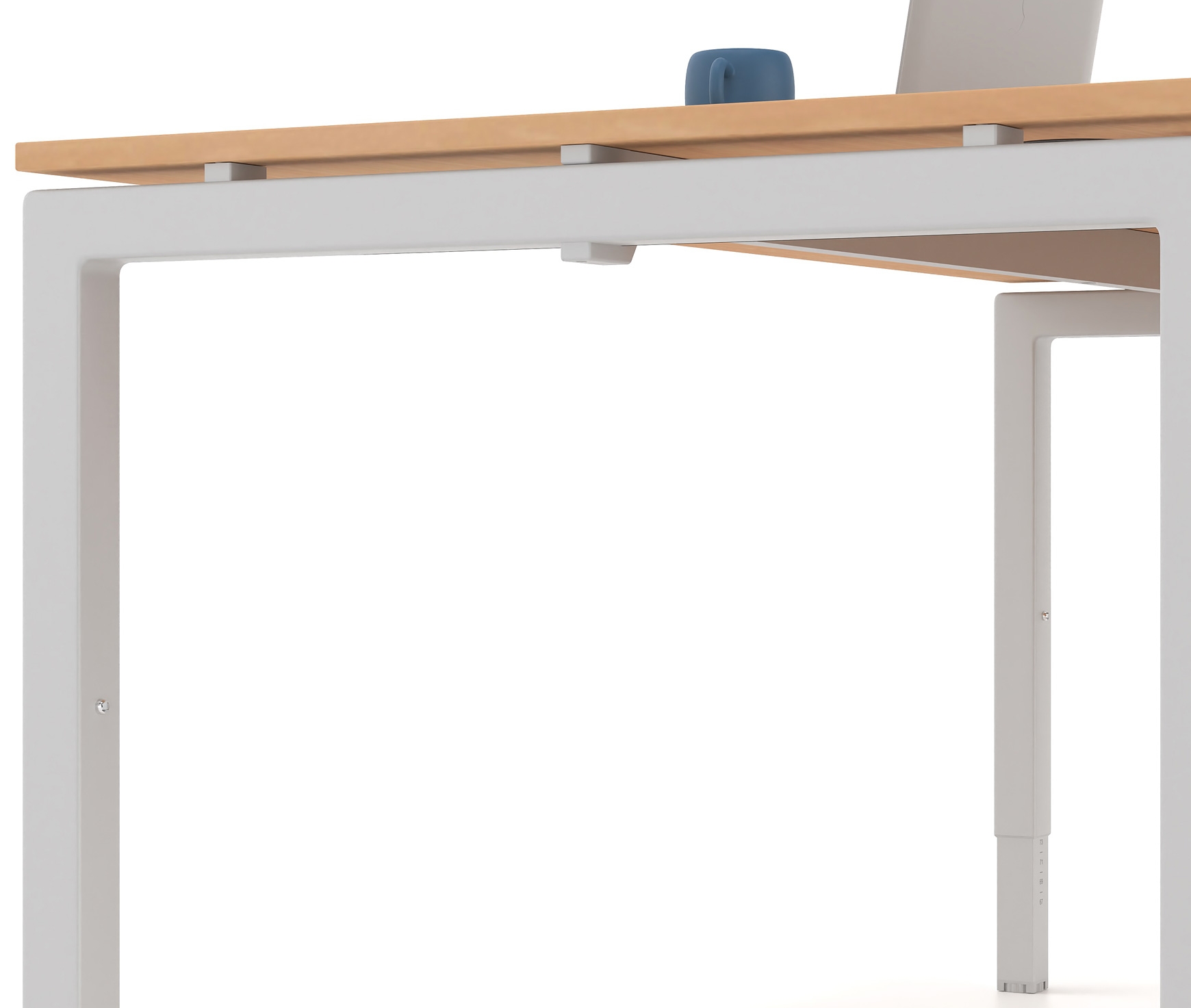ASSEMBLAGE FACILE - Le cadre de la série NEO est conçu de manière à pouvoir être assemblé très facilement et rapidement. Le cadre métallique est déjà fixé à la surface du bureau et il reste à visser au total 4 vis dans les nœuds de forme spéciale des supports de bureau pour terminer l'assemblage.