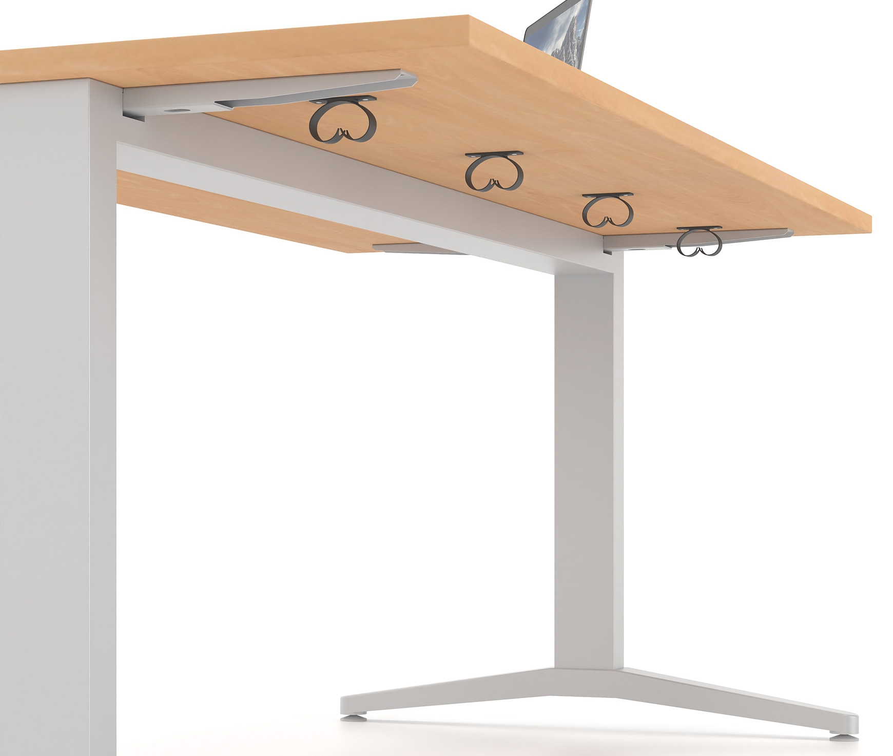 CONSTRUCTION ROBUSTE - Grâce à des supports métalliques verticaux symétriques en forme de T, la série de bureaux ALMA se distingue par sa robustesse et sa durabilité, en particulier après de multiples réassemblages