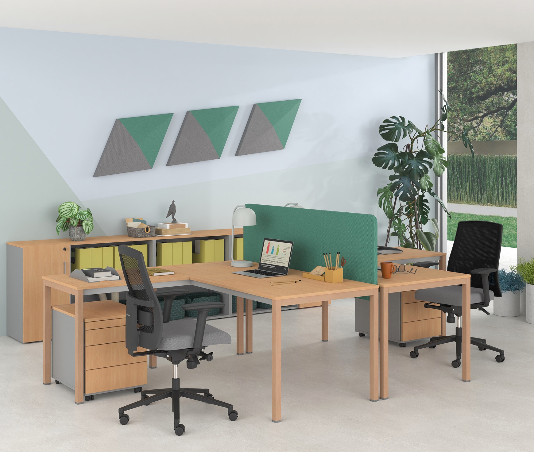 Les cloisons autoportantes MONO ont été conçues pour offrir une absorption acoustique supérieure et pour améliorer la qualité de l'environnement de travail, notamment dans les bureaux ouverts ou dans les zones des niveaux de bruit élevés.