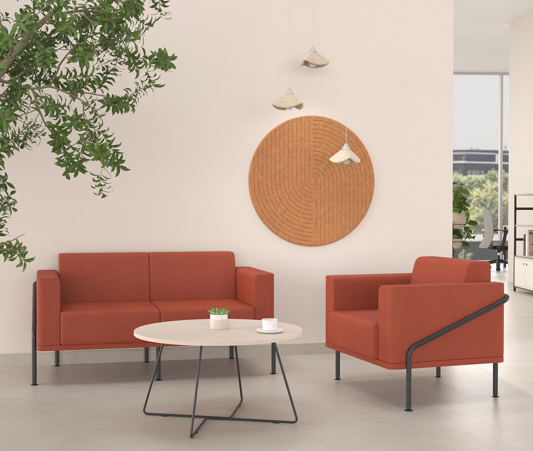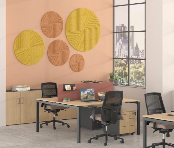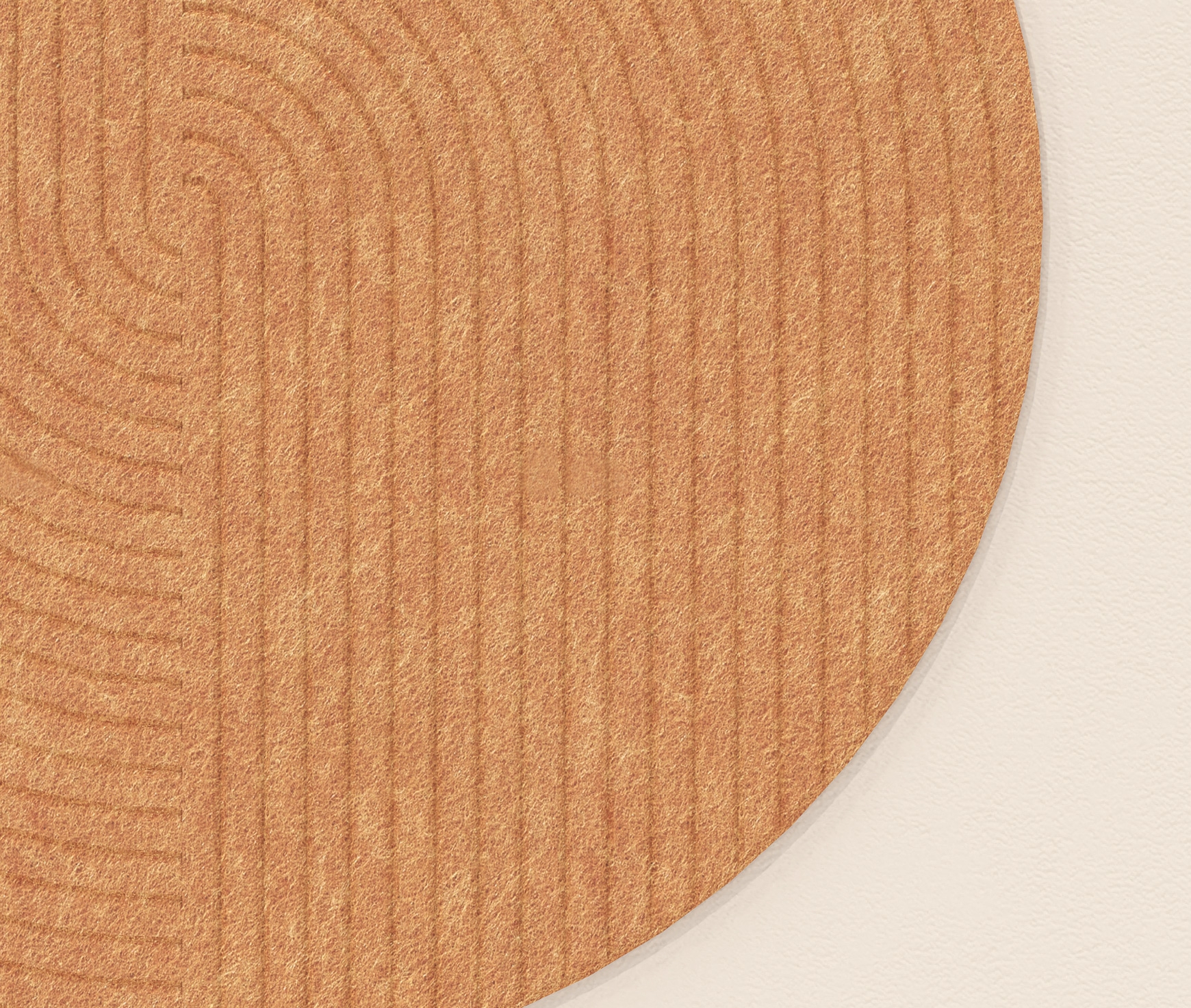Les panneaux acoustiques muraux sont disponibles en formes rectangulaire, carrée et ronde. Ils ont une épaisseur de 18 mm et sont fabriqués en feutre 100 % PET (60 % fibres PET recyclées + 40 % fibres PET vierges), un matériau aux excellentes propriétés d’absorption sonore. L’installation murale s’effectue à l’aide de matériaux de fixation appropriés ou, alternativement, au plafond avec un système de suspension dédié.