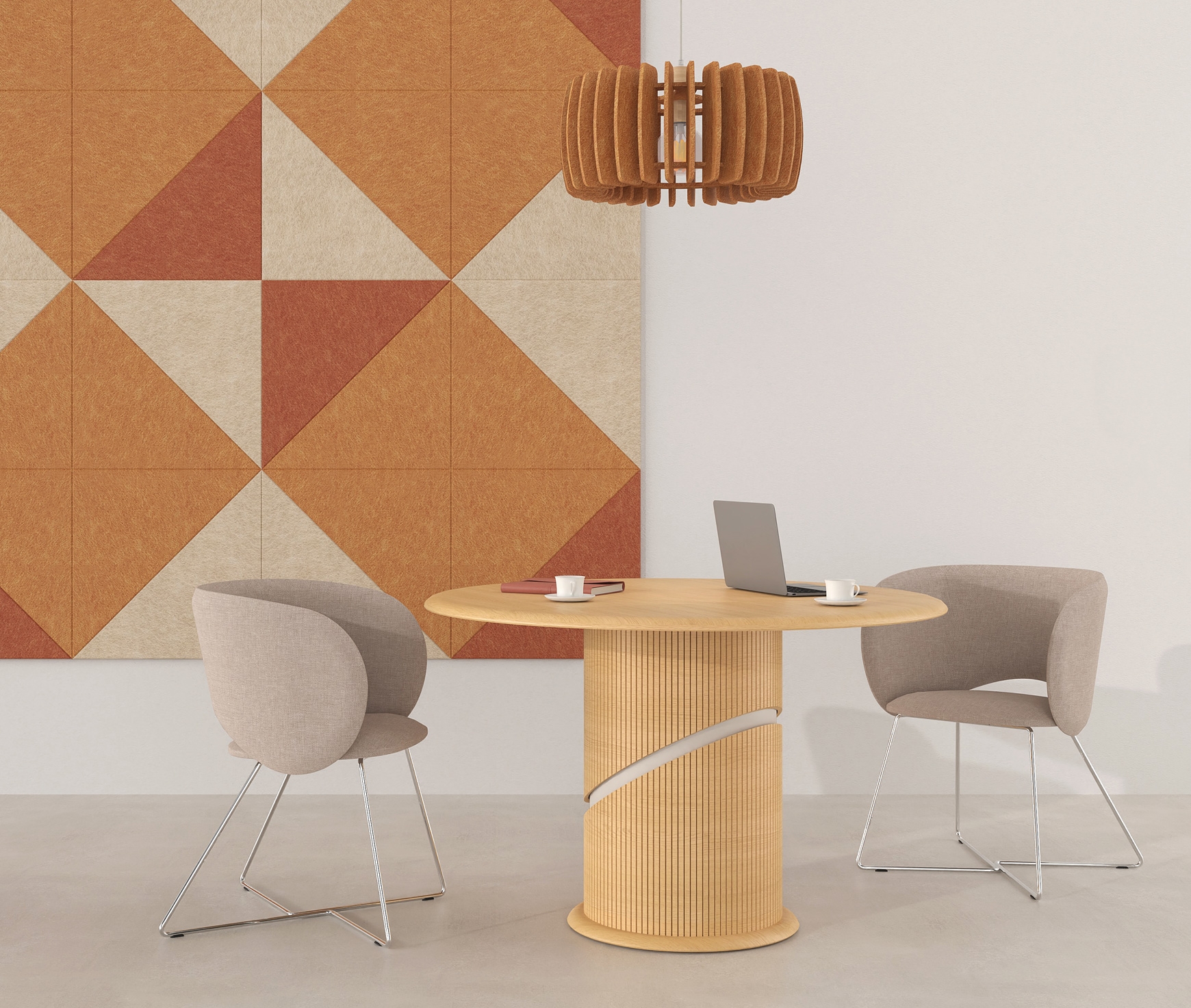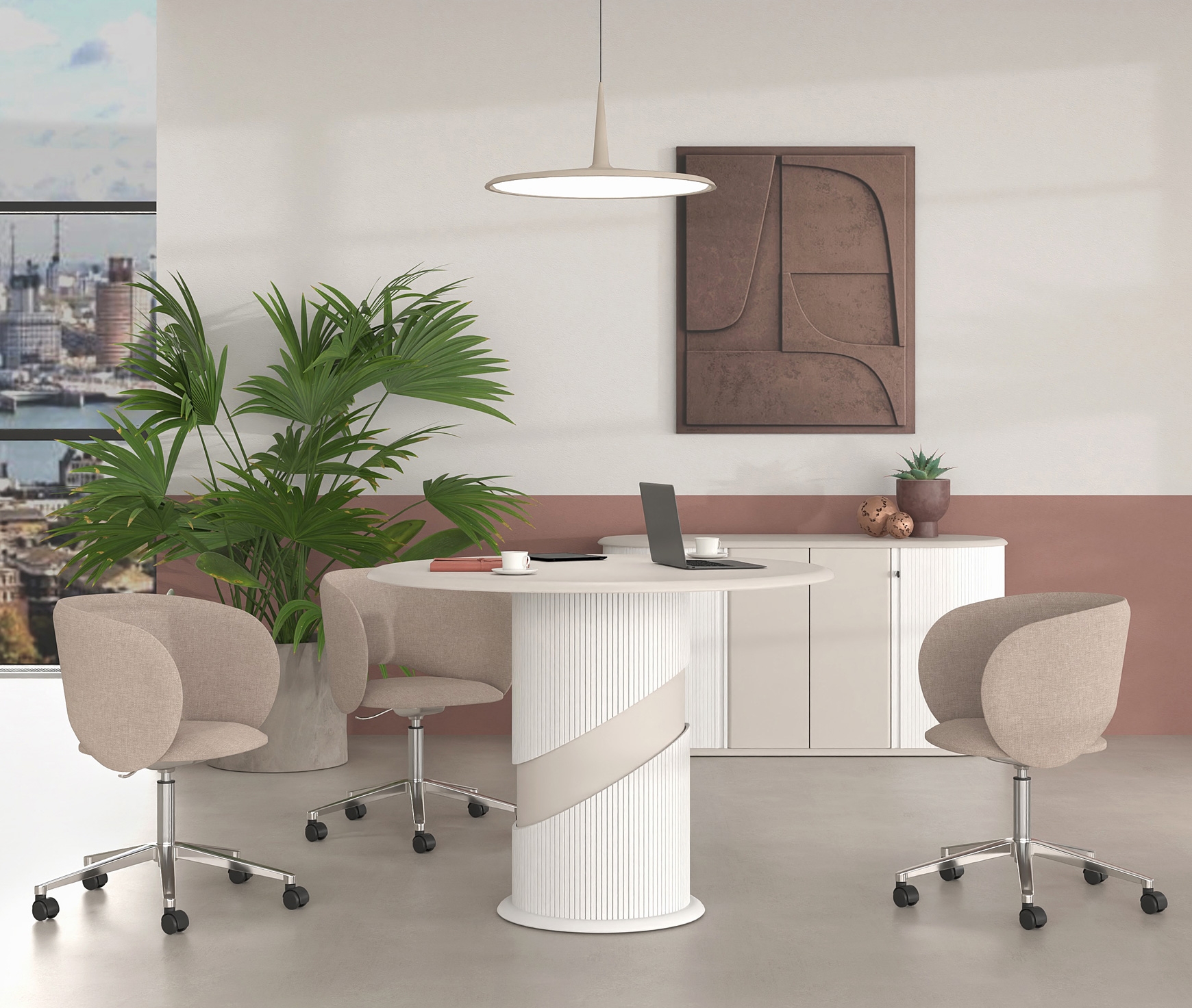 ˃˃ Surface circulaire adaptée aux réunions collaboratives