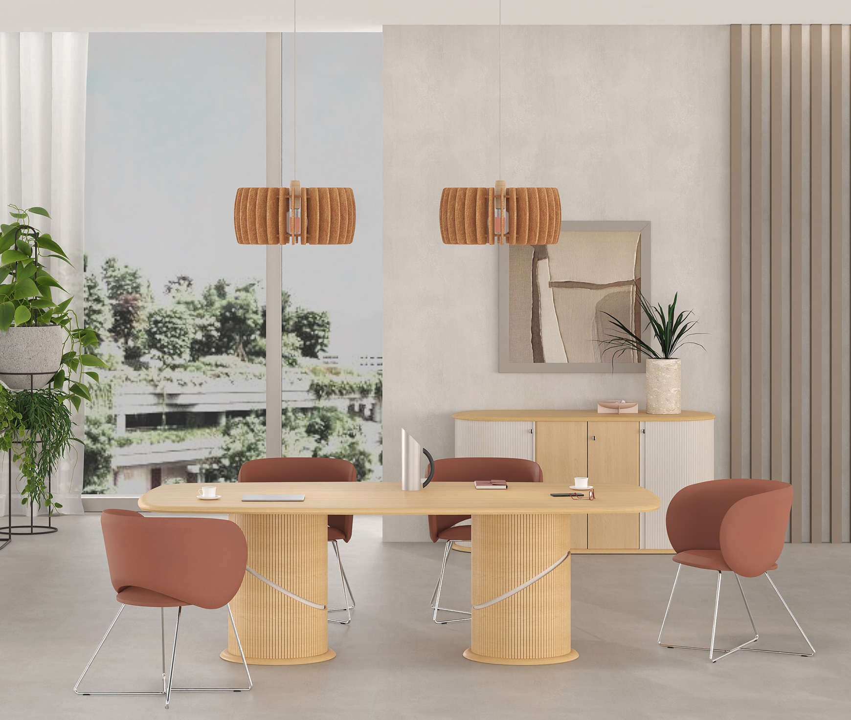 HELION a été conçu pour offrir un éclairage de qualité avec une esthétique moderne. Le feutre PET recyclé contribue à créer une ambiance conviviale et à réduire le bruit dans l’espace, tandis que les différentes options de couleurs permettent une adaptation facile à tout environnement. Idéal pour les espaces professionnels et d’accueil, où l’éclairage joue également un rôle décoratif.