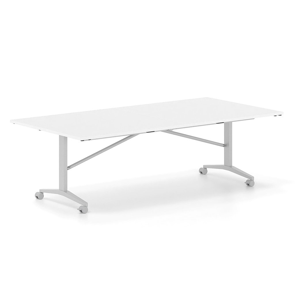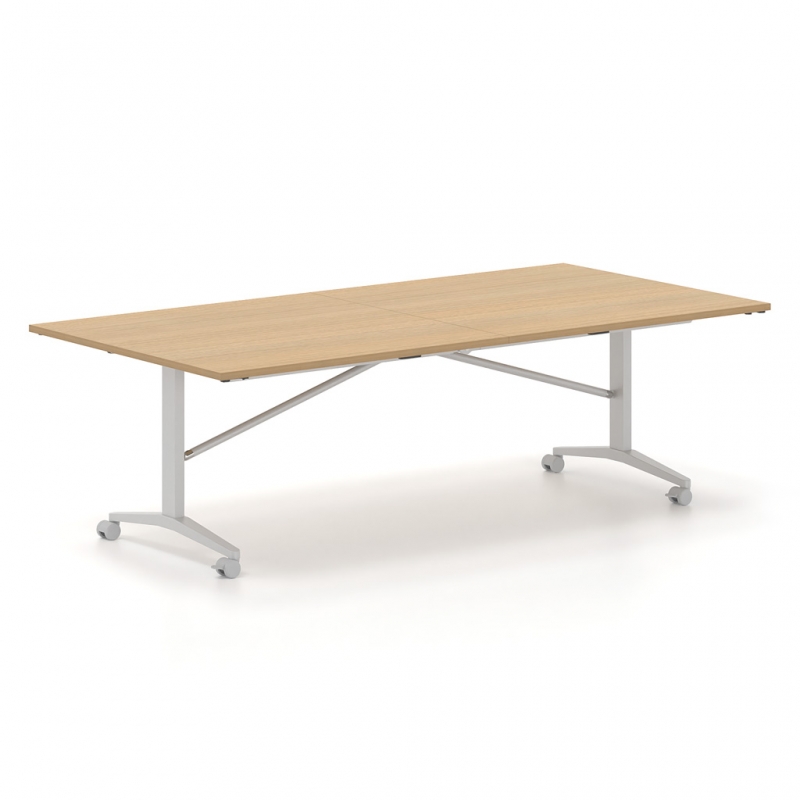 Une table aux lignes épurées de forme rectangulaire. La table rabattable de conférences ALMA CO il a l'architecture appropriée pour de longues heures d'utilisation et une flexibilité maximale. La surface rabattable avec le cadre pliable fait de cette table le choix idéal pour les salles de conférence, les hôtels, la restauration, les salles de classe, etc., car elle permet une adaptation rapide et appropriée des espaces de travail. Il a des roues doubles avec freins pour un déplacement facile.