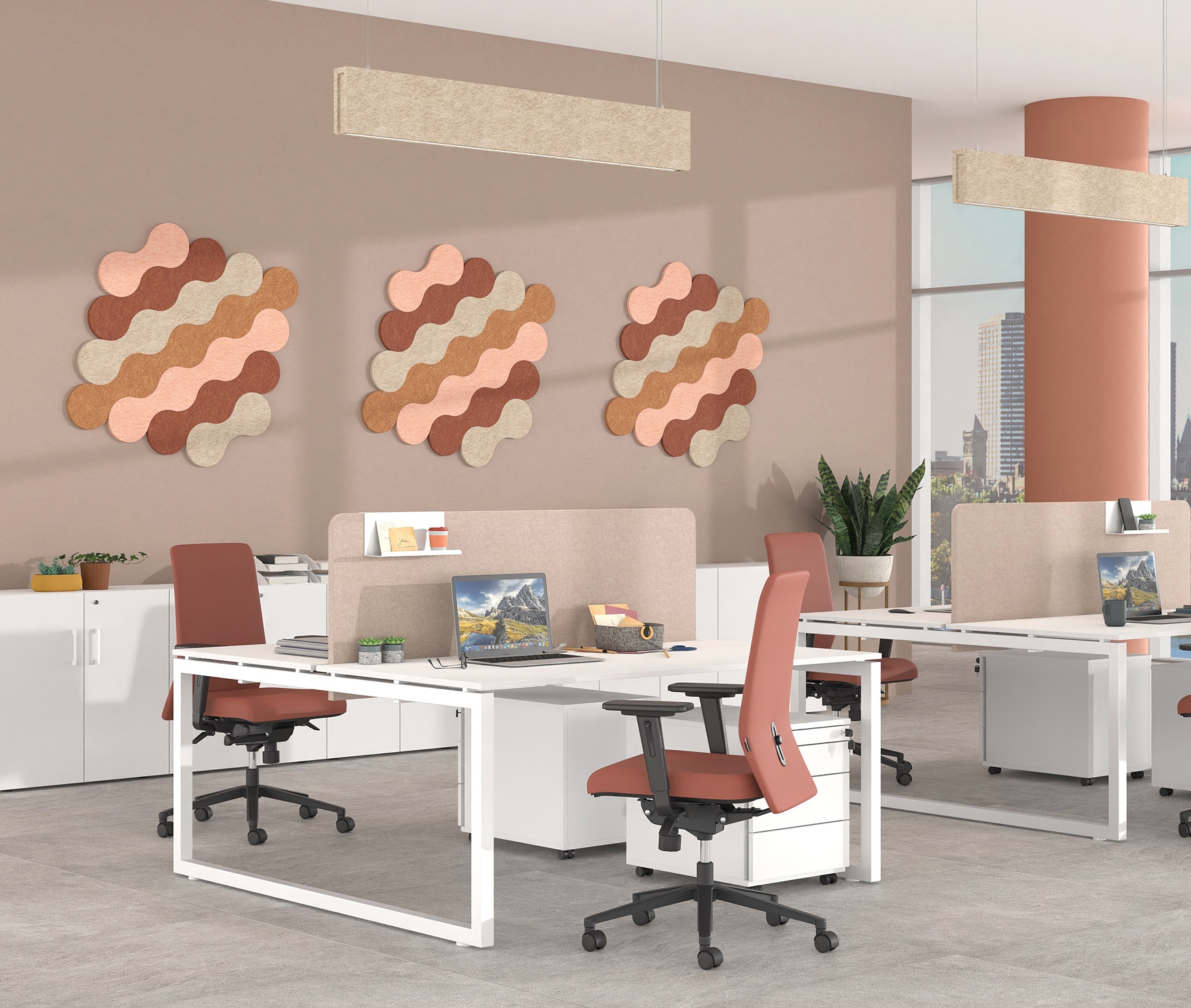 Les systèmes acoustiques de DROMEAS offrent une absorption sonore optimale sur les murs et les plafonds où ils sont installés. Fabriqués en PET à 100 % et d’une épaisseur de 18 mm, ils améliorent l’acoustique des espaces en absorbant les ondes sonores, en régulant la réverbération et en réduisant les bruits gênants, en particulier dans les lieux où la concentration de personnes accentue le problème des réflexions sonores. Parallèlement, leur esthétique contemporaine, disponible dans une variété de modèles et de couleurs, contribue à créer un environnement de travail agréable et harmonieux.
