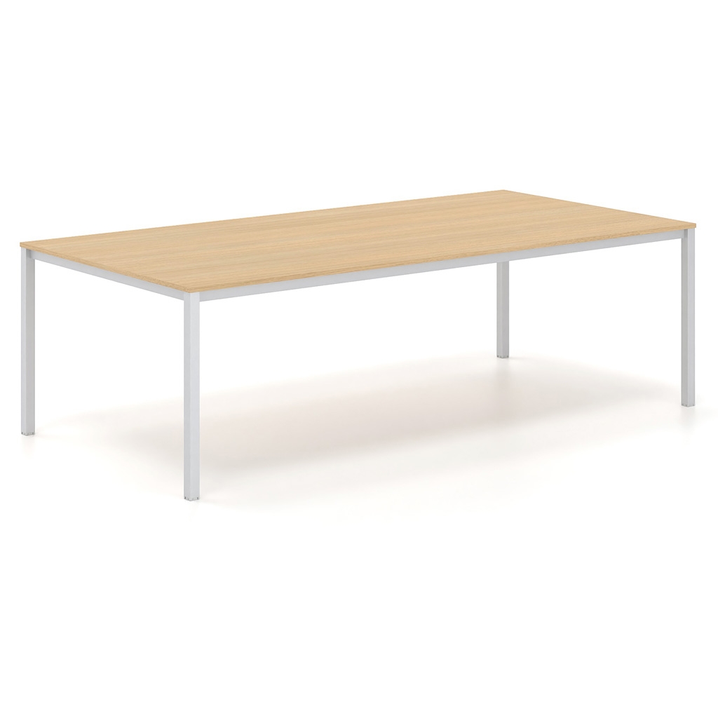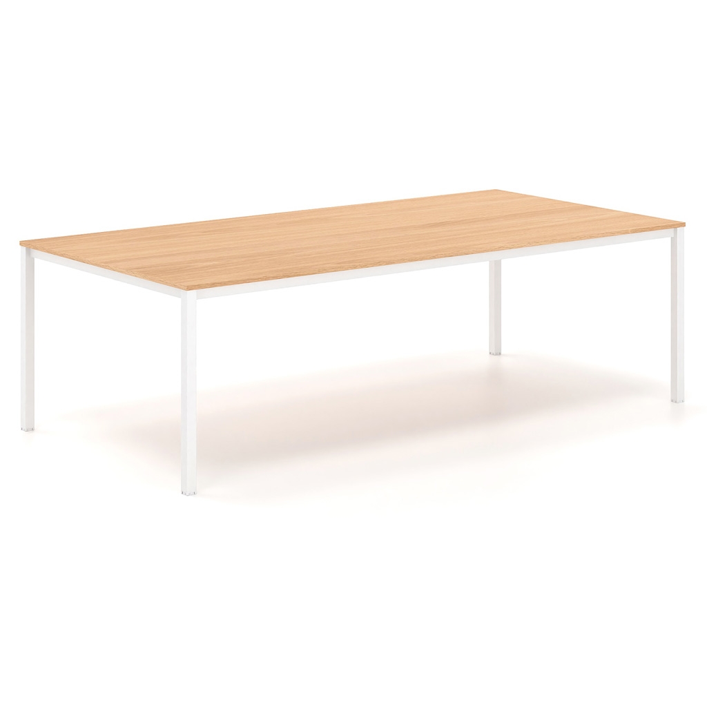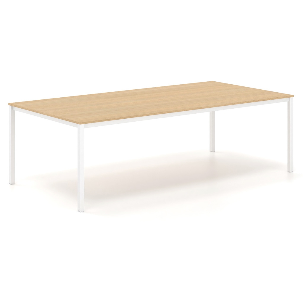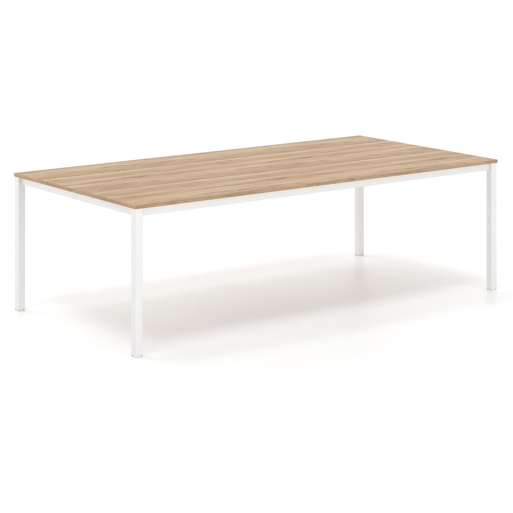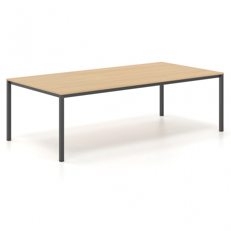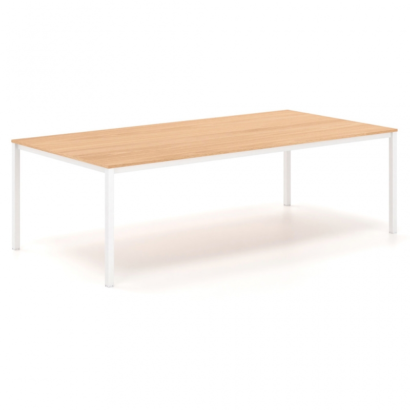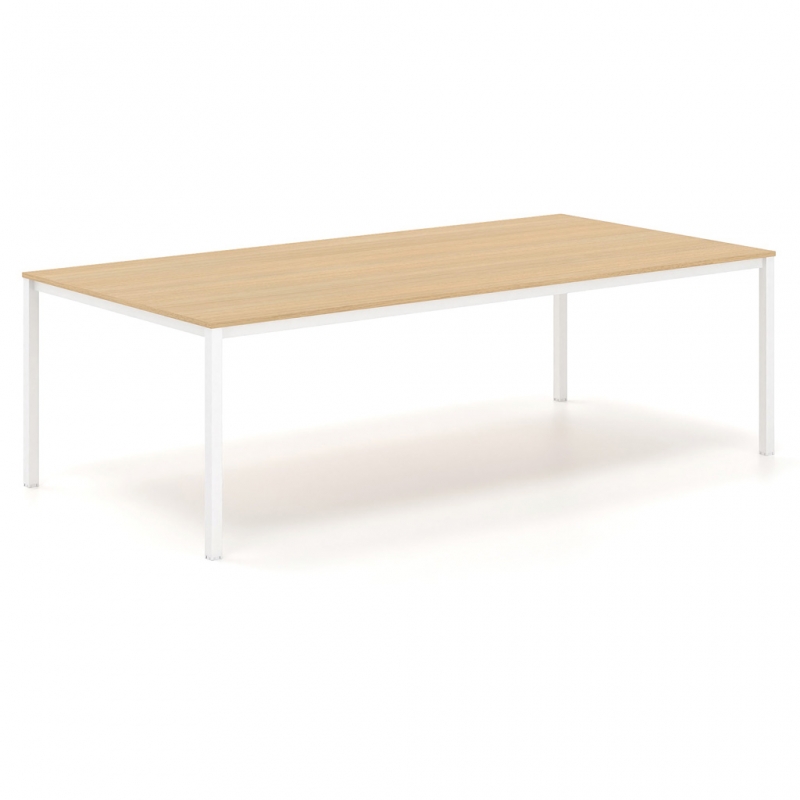 Le cadre carré en métal et les lignes épurées sont les principales caractéristiques de la série Tetra. Elle convient aux espaces qui nécessitent une esthétique moderne et simple. En même temps, elle offre une ergonomie maximale, grâce à laquelle l'utilisateur profite d'une expérience agréable. La surface est composée de mélamine dans différentes nuances, parmi lesquelles vous pouvez choisir celle qui convient à l'espace ou à votre style. Le cadre est en acier de section rectangulaire. La fonctionnalité globale de la table de conférence est complétée par un obturateur en option, nickelé ou peint, et une goulotte passe-câbles sous la surface, qui facilitent le passage et l'organisation des câbles de manière discrète.